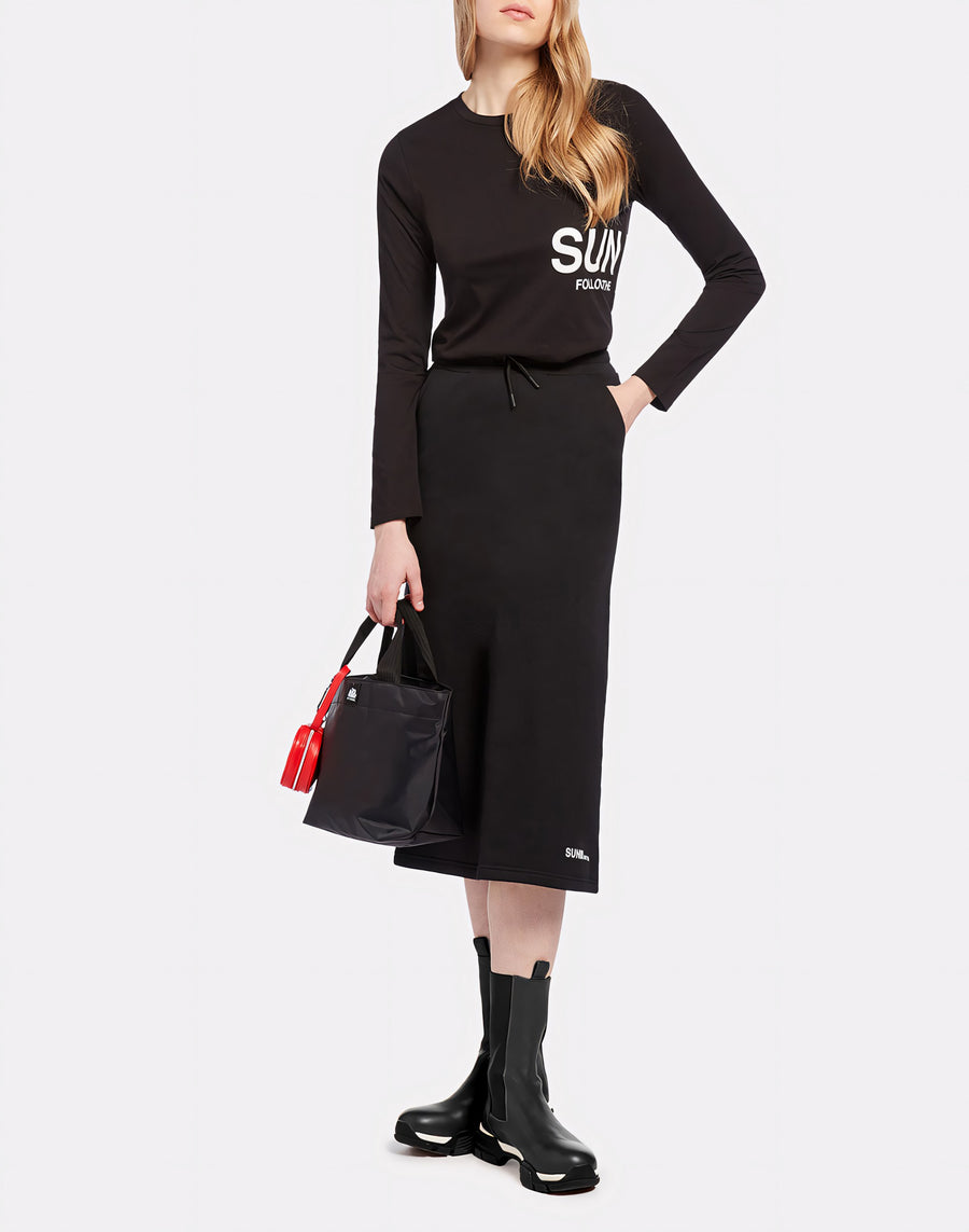 Gonna lunga realizzata in tessuto felpato con vita elasticizzata