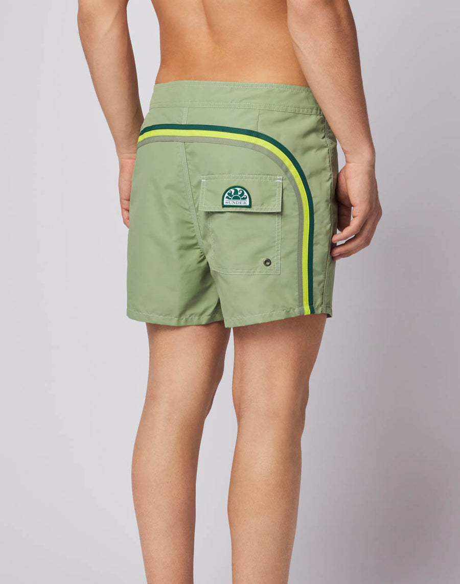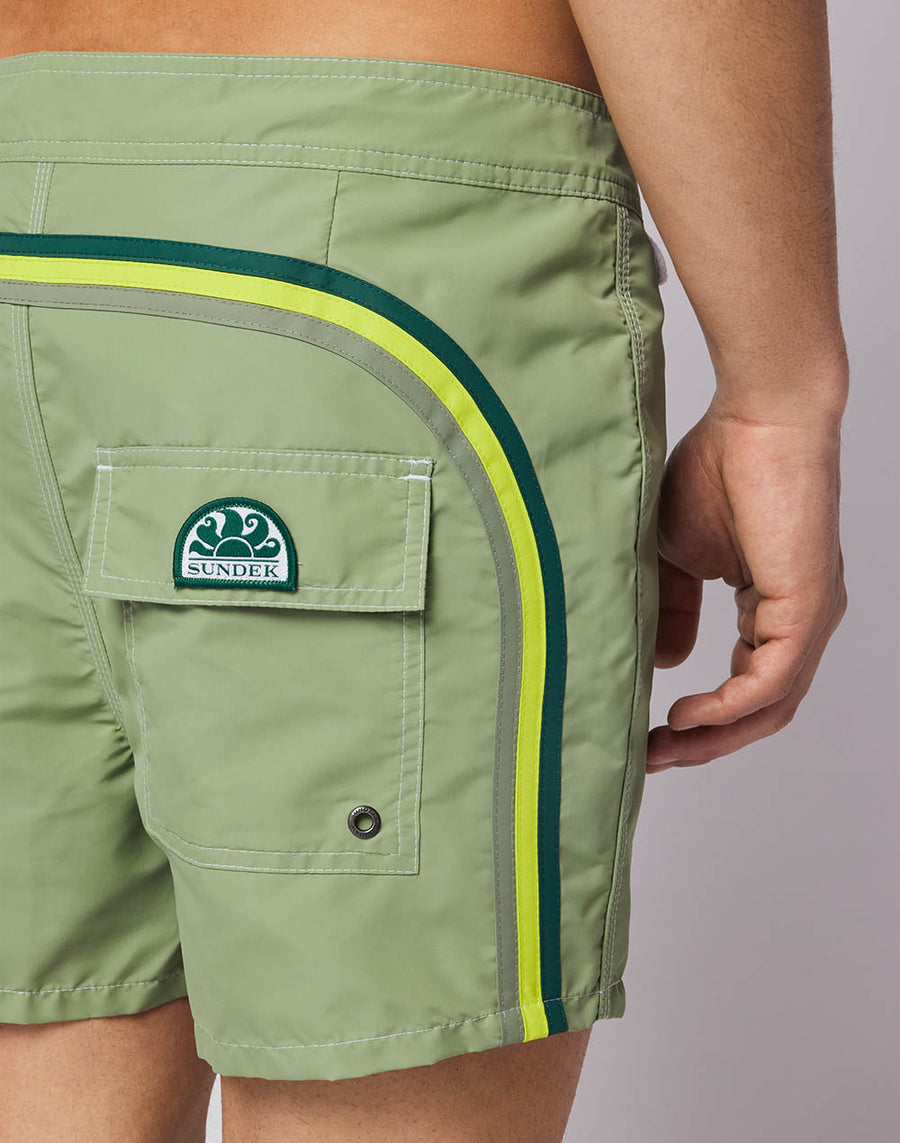 Energia vibrante, colore intenso e l’iconico arcobaleno Sundek che fa capolino per questo costume boxer da uomo. E' realizzato nel nostro tessuto storico nylon taffetà, dalla mano serica confortevole e ad asciugatura rapida, mentre le cuciture a tre aghi lo rendono resistente vacanza dopo vacanza. Lunghezza 35 cm (taglia M), misurati sul lato esterno della gamba.