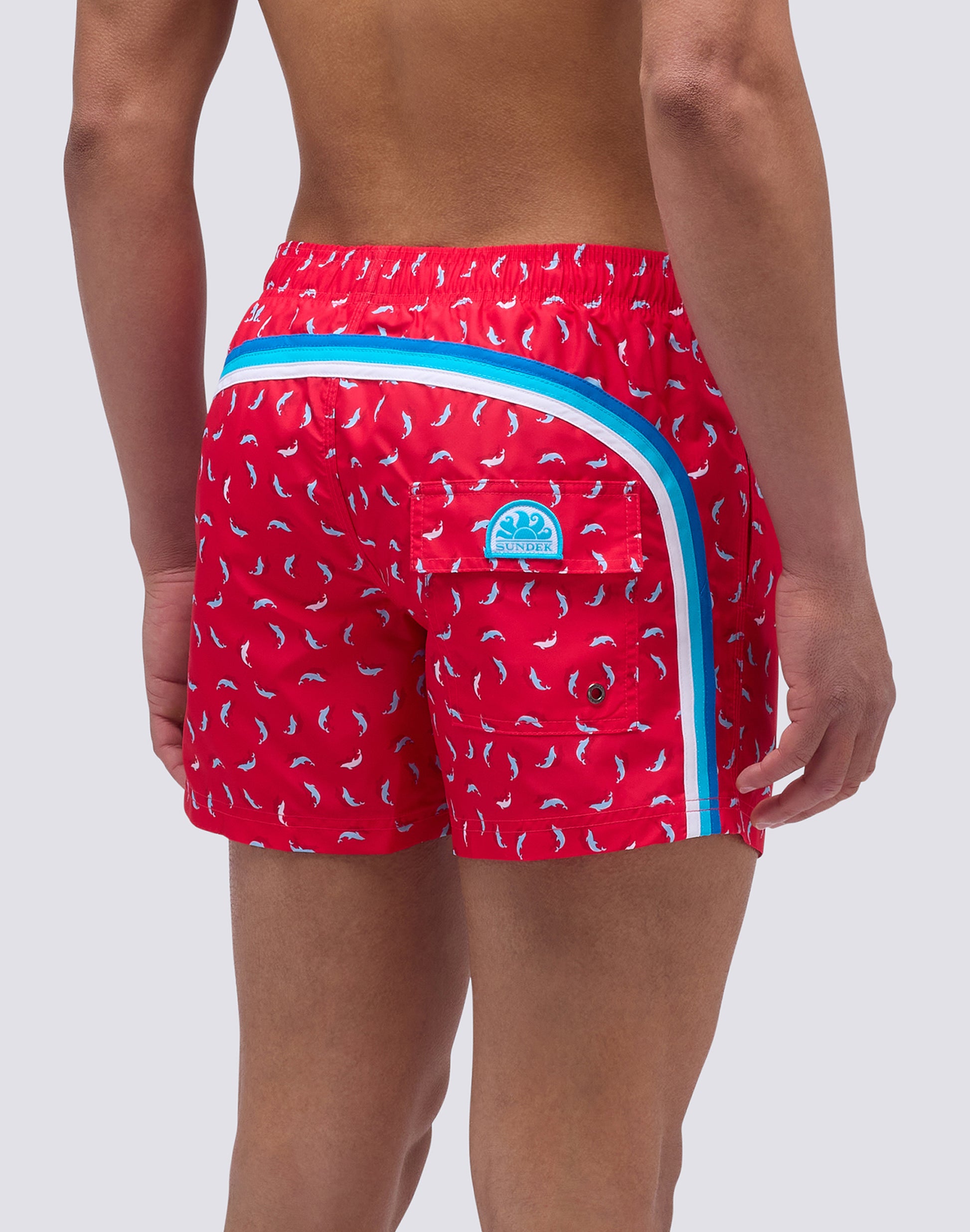COSTUME DA BAGNO CORTO VITA ELASTICATA IN POLIESTERE RICICLATO CON STAMPA DELFINI