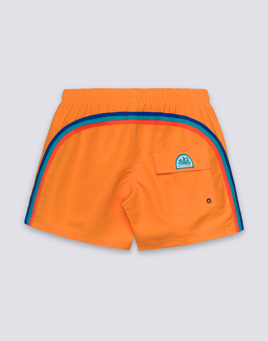 Caratterizzato dall'inconfondibile arcobaleno Sundek sul retro, simbolo di autenticità e heritage del brand, questo shorts mare presenta una vita elasticata con coulisse regolabile per una vestibilità personalizzata. Le cuciture a tre aghi garantiscono massima resistenza e durata nel tempo, anche dopo innumerevoli sessioni di surf, nuoto e sole.