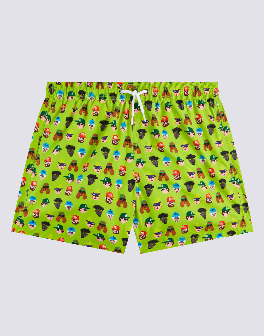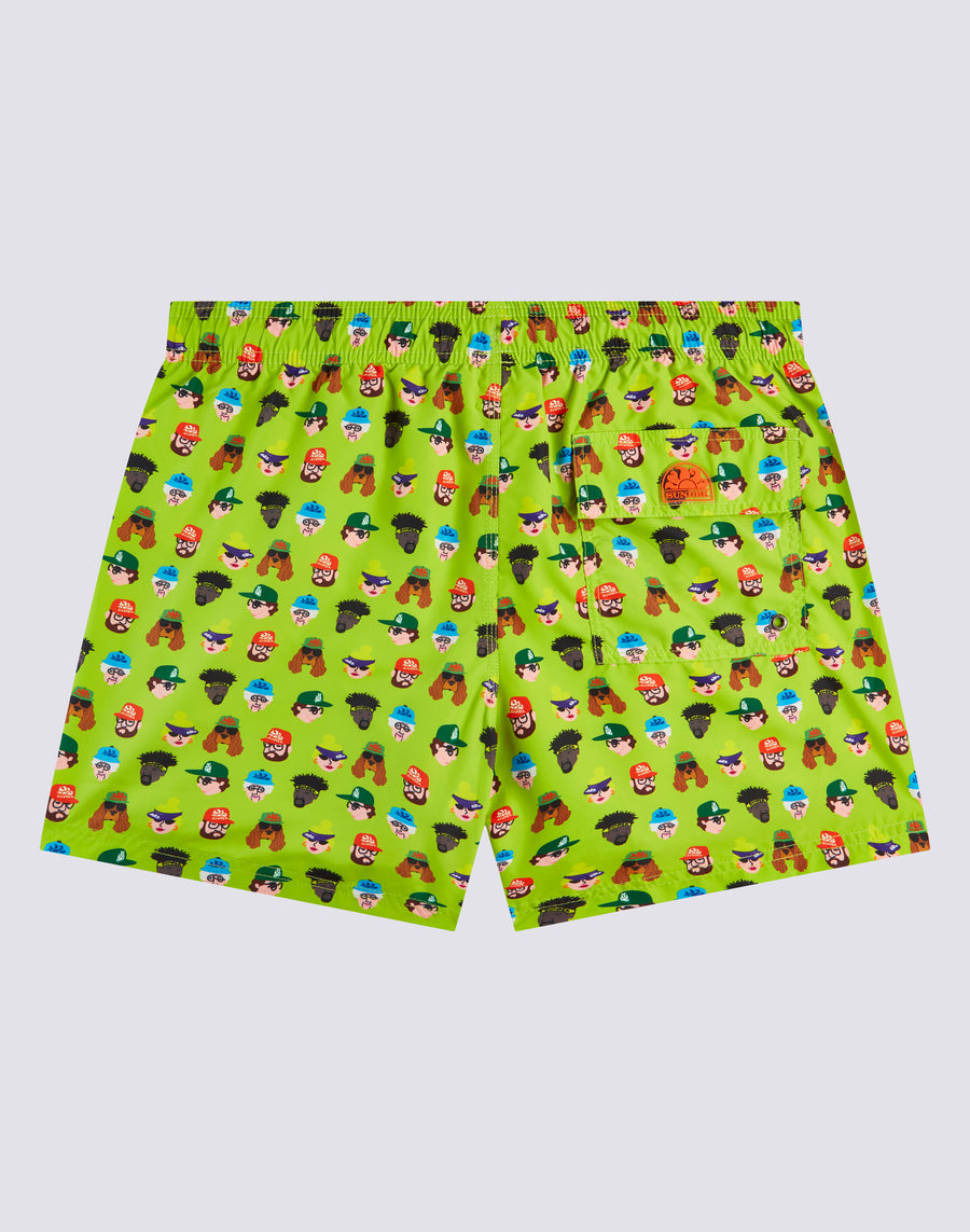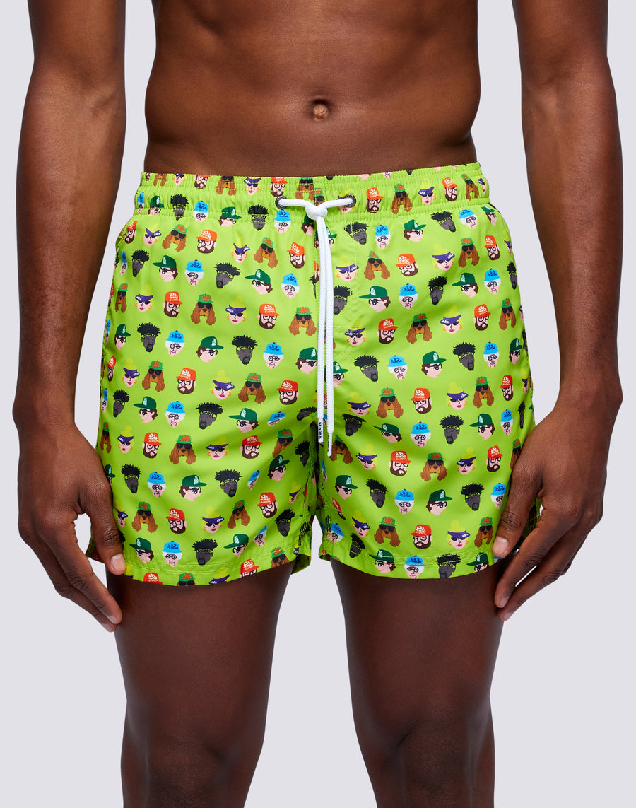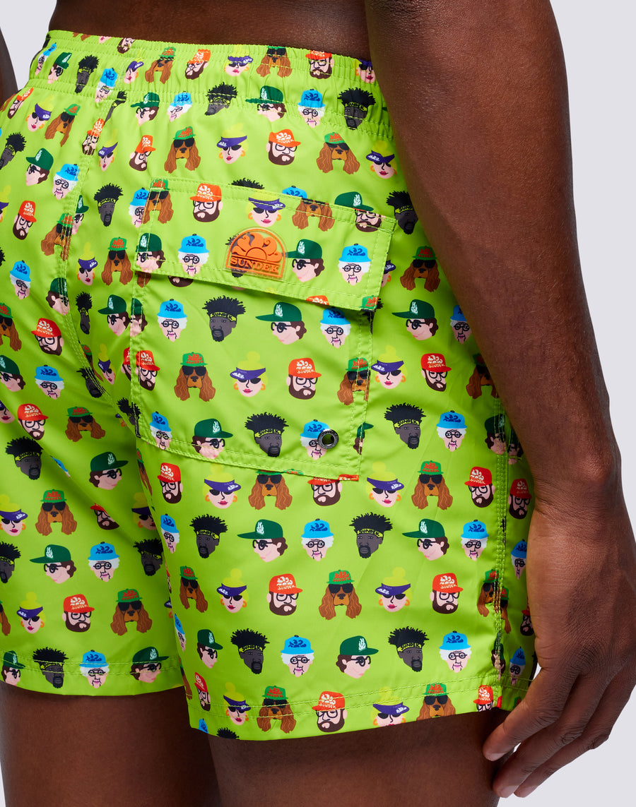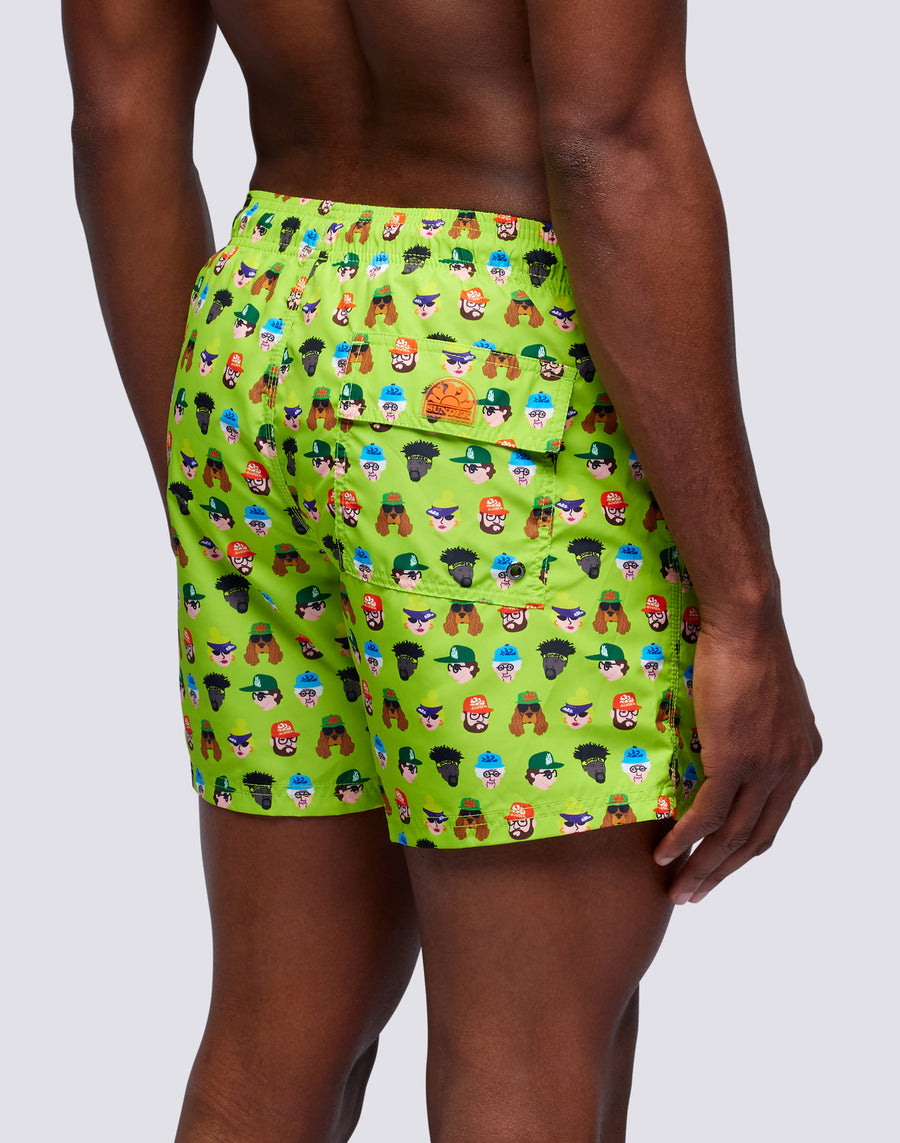 COSTUME DA BAGNO CORTO A VITA ELASTICATA MICROSTAMPA GUESS WHO