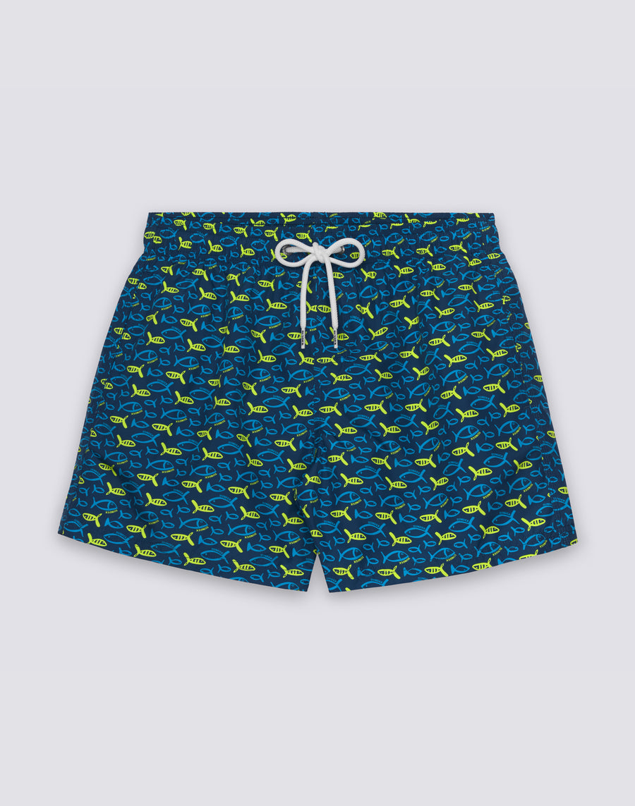 COSTUME DA BAGNO UOMO CORTO VITA ELASTICATA STAMPA FISHAZ IN POLY RICICLATO