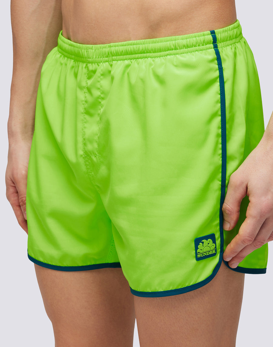 COSTUME DA BAGNO CORTO CON VITA ELASTICATA E SPACCHI LATERALI ROTONDI