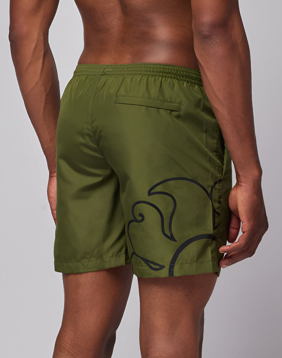 Costume da bagno uomo a pantaloncino lunghezza media a vita elasticata. Dotato di coulisse e tasca posteriore con zip. Si asciuga rapidamente grazie al poliestere leggero con cui è realizzato. Lunghezza esterno gamba 16"/41 cm (in taglia M).