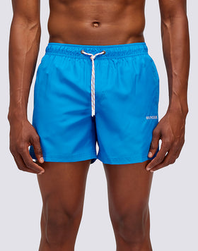 Indossa il nostro costume da bagno a pantaloncino da uomo con tessuto riciclato Repreve®. Con la sua vita elasticata, ti sentirai comodo e libero di muoverti in acqua. Il patch e i lacci tricolore completeranno il tuo look da mare.