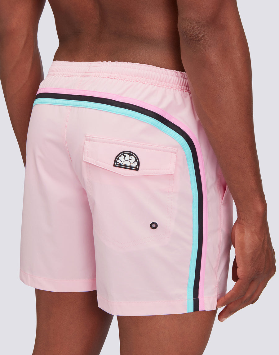 86%PL 14%EA – 4 WAY STRETCH Tessuto in poliestere elasticizzato, leggero e confortevole. Offre massima libertà di movimento, è idrorepellente e si asciuga rapidamente. Perfetto sia per la spiaggia che per le attività sportive.