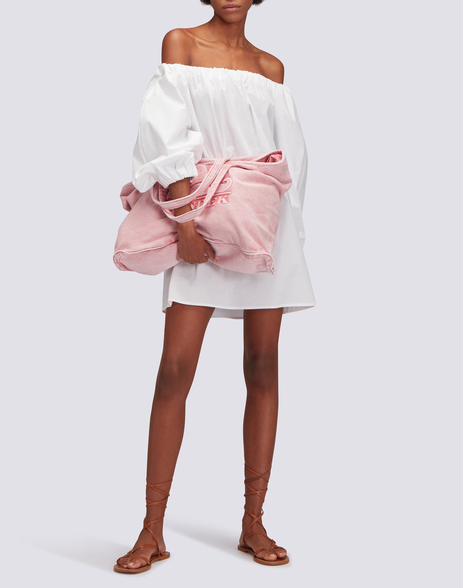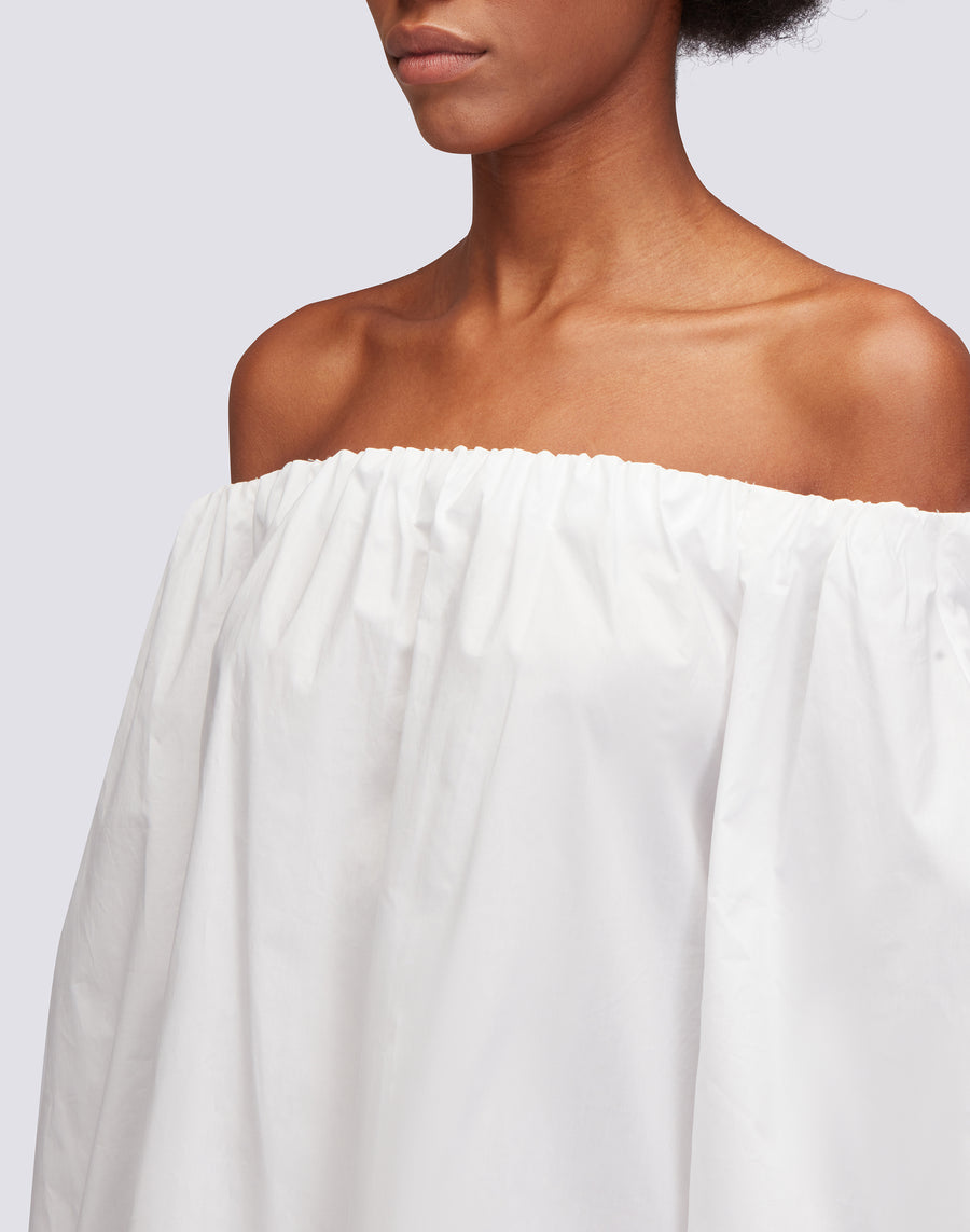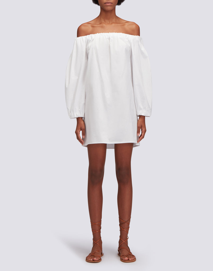 ABITO CORTO IN POPELINE CON SCOLLO A BARCA