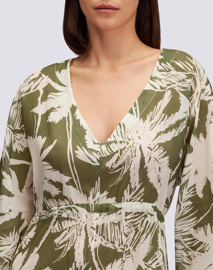 ABITO LUNGO IN COTONE VOILE CON STAMPA TROPIC SAVANA