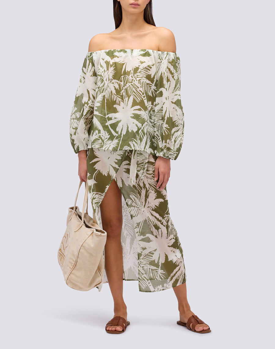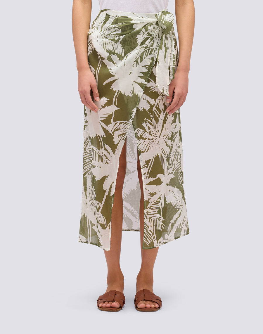 Pareo in cotone voile con stampa Tropic Savana e apertura laterale. Un capo essenziale per dare vita a outfit da spiaggia colorati e vivaci.