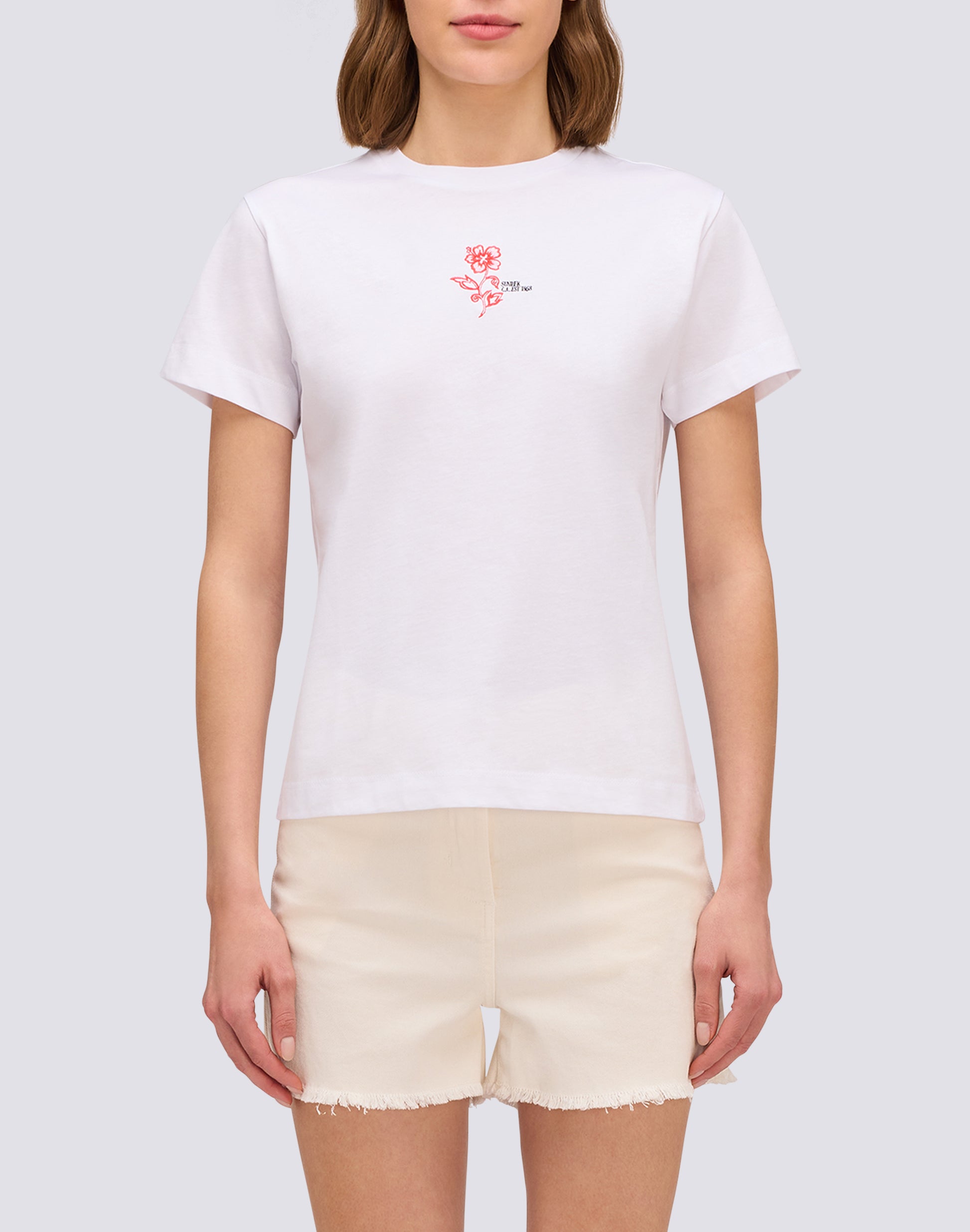 T-SHIRT DONNA CON IBISCO RICAMATO E STAMPATO