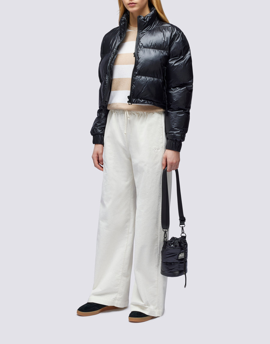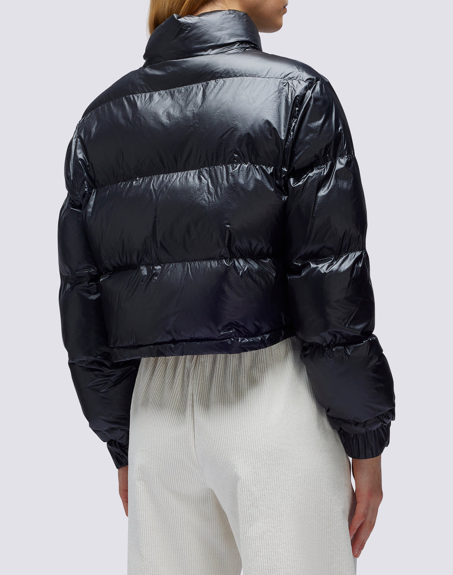 Strizza l'occhio alle ultime tendenze questo modello di piumino donna dal taglio corto, con full zip centrale e tasche laterali. Realizzato in nylon crinkle, è perfetto per chi cerca una giacca originale, da usare tutti i giorni.