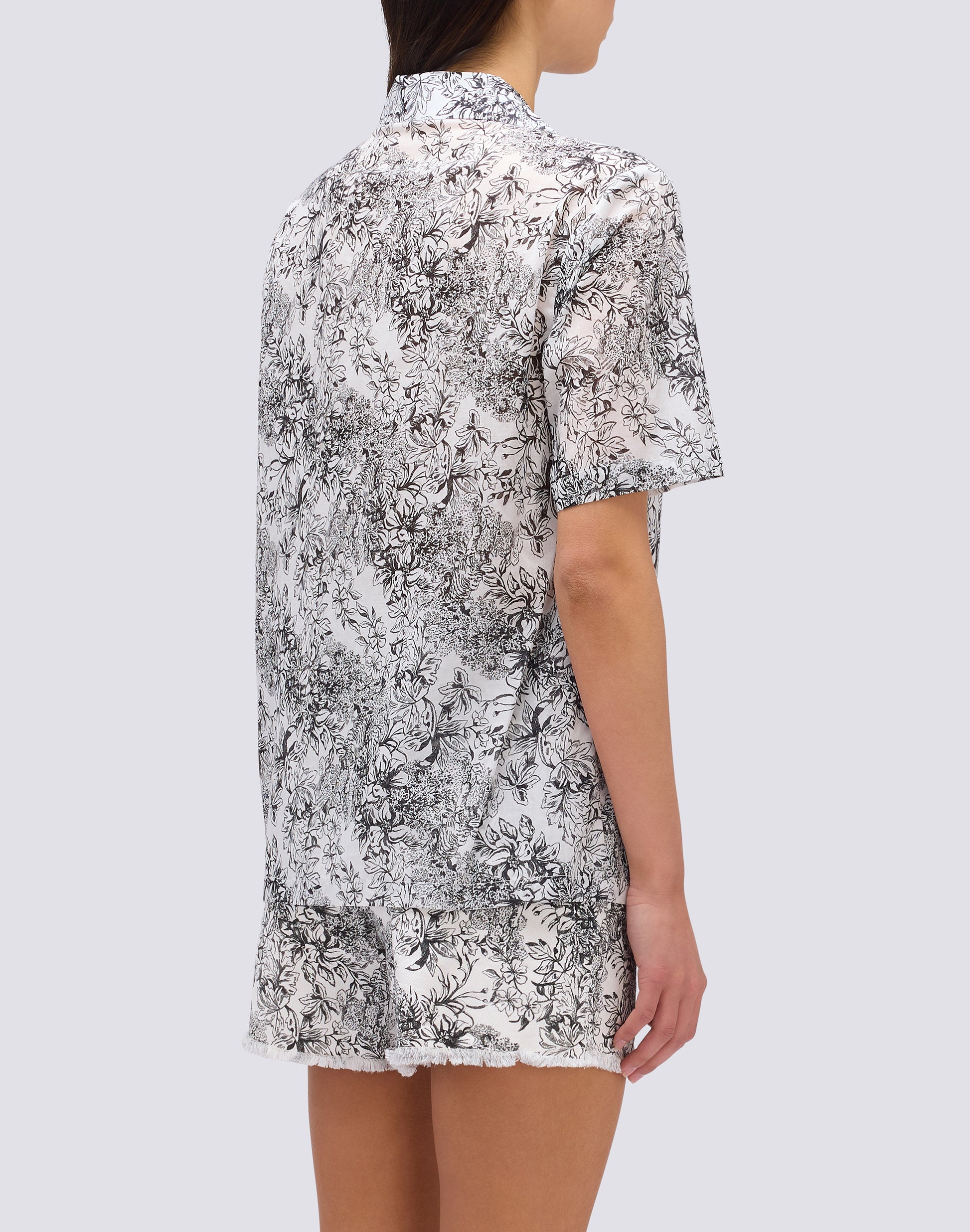 Camicia donna in fantasia Fleur De Joie, da abbinare ai bikini o agli shorts di questa collezione, realizzati nella stessa fantasia, per dare vita a look coordinati.