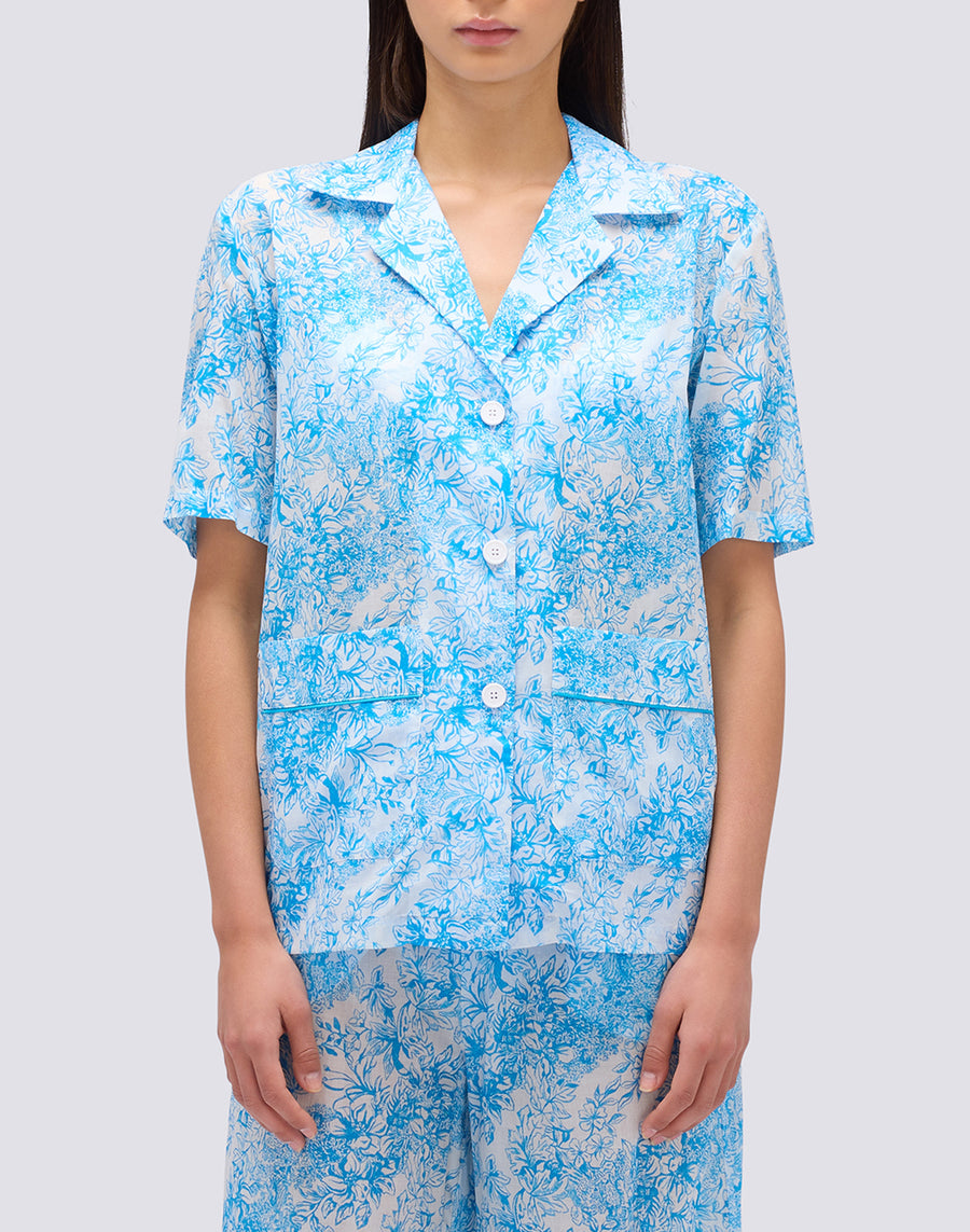 Camicia donna in fantasia Fleur De Joie, da abbinare ai bikini o agli shorts di questa collezione, realizzati nella stessa fantasia, per dare vita a look coordinati.
