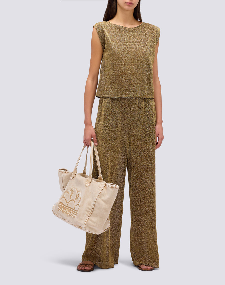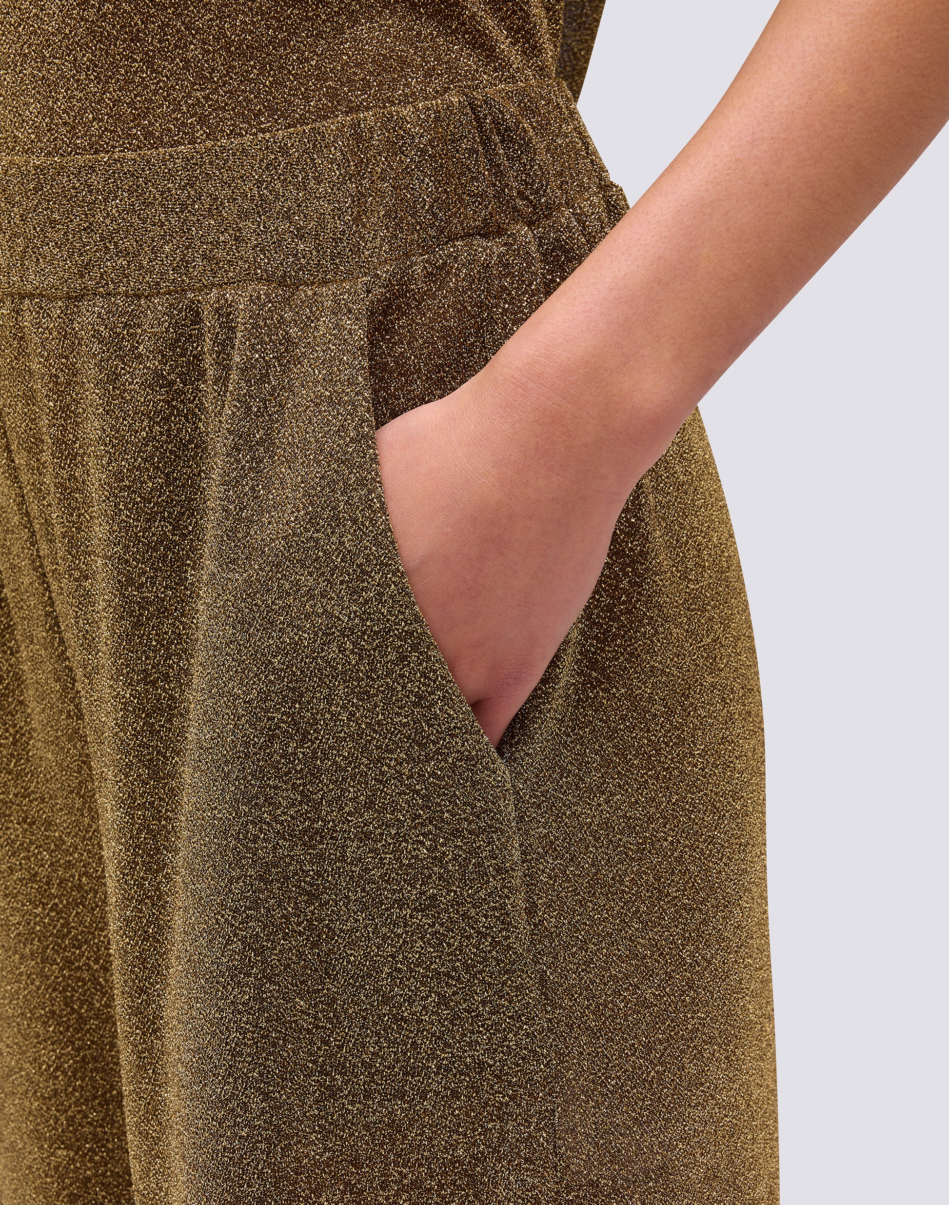 I pantaloni lunghi in lurex da donna sono perfetti per un look scintillante. Con il loro tessuto brillante, ti faranno risplendere in ogni occasione. Aggiungi un tocco di luce al tuo guardaroba con questi pantaloni super chic.