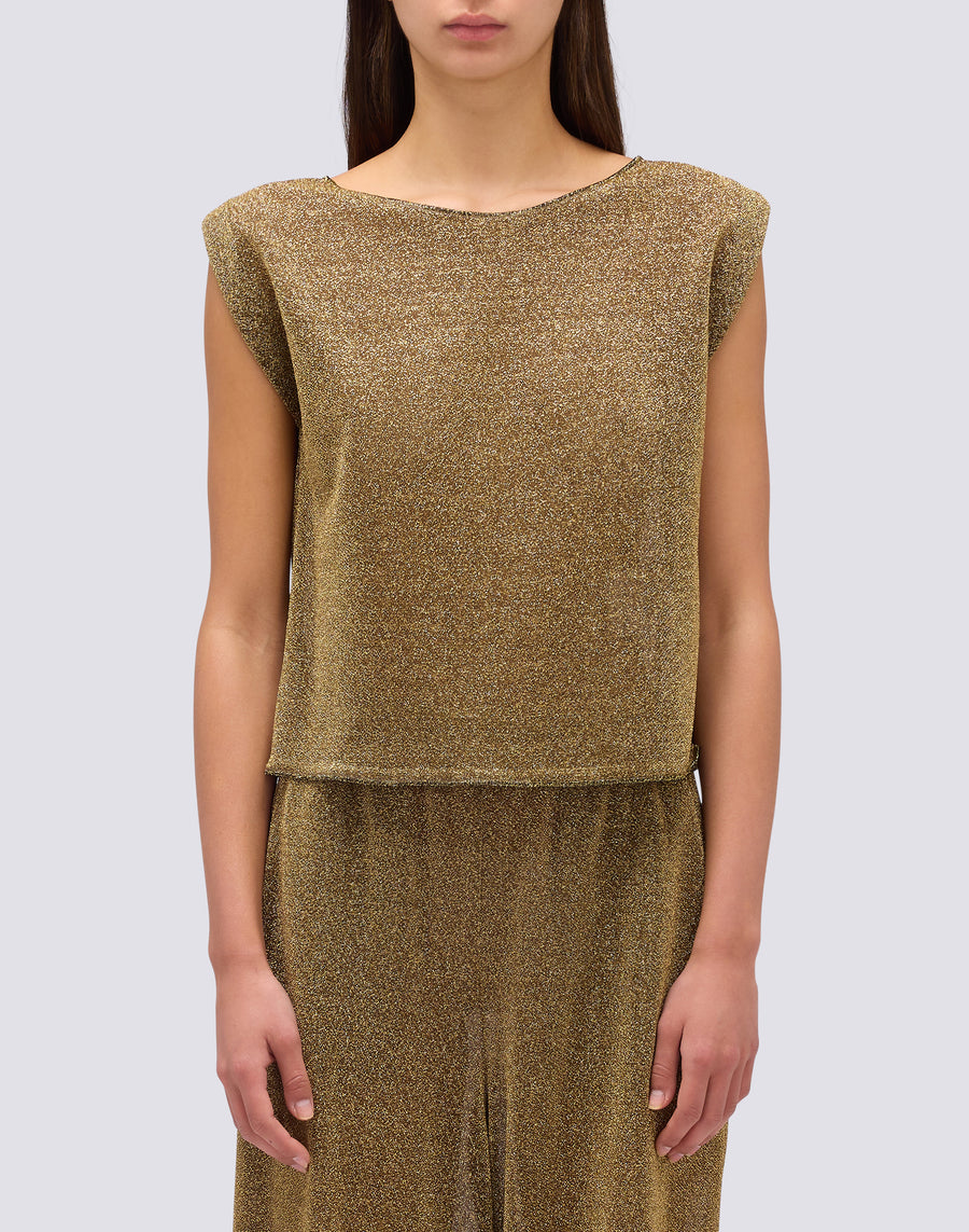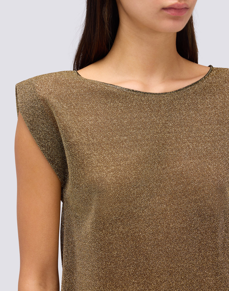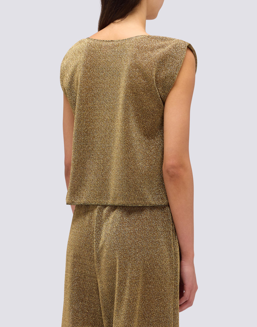 Questa t-shirt donna in lurex è perfetta per dare vita a look scintillanti. Da abbinare agli shorts o ai pantaloni coordinati, aggiungerà un tocco glamour al tuo stile. Realizzata in morbido tessuto, è anche comoda da indossare tutto il giorno.