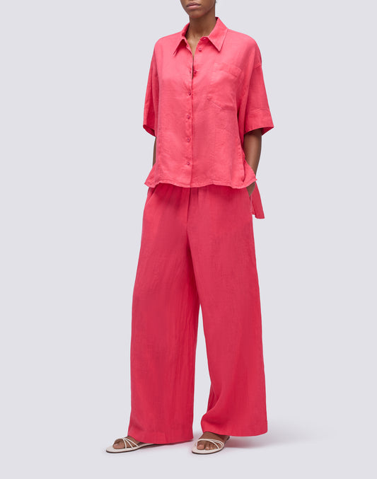 LONG PALAZZO TROUSERS IN GARMENT-DYED LINEN