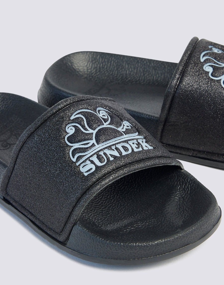 Super comfortable girls' beach slippers, perfect for the beach and to wear all summer on many different occasions, with the added touch of the sparkling glitter effect of the band. Sole height 1 - 3 cm.