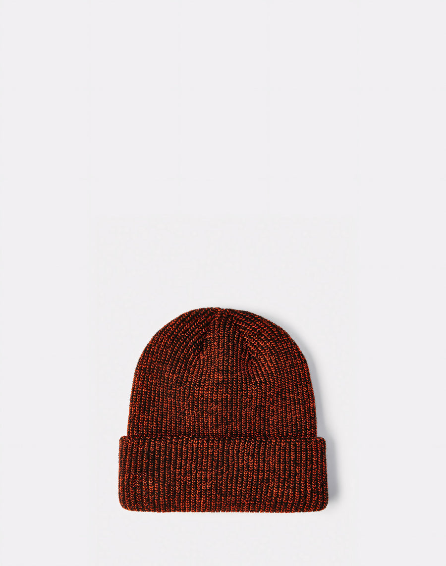 Knitted beanie with muliné effect, with contrasting embroidered logo on the front. The must-have accessory for your winter outfits.