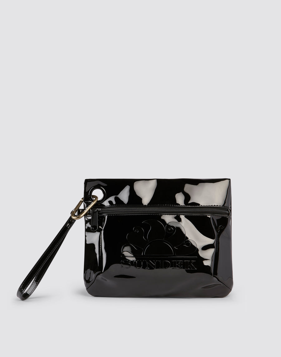 Waterproof beach clutch bag with snap hook and hand loop, to carry with you how and where you want. A versatile clutch bag that you can use on its own with the hand loop or attach to bags and backpacks thanks to the practical snap hook. The shiny effect and the front stitching give the clutch bag an indispensable touch of character. It is also waterproof, to protect your most important objects.