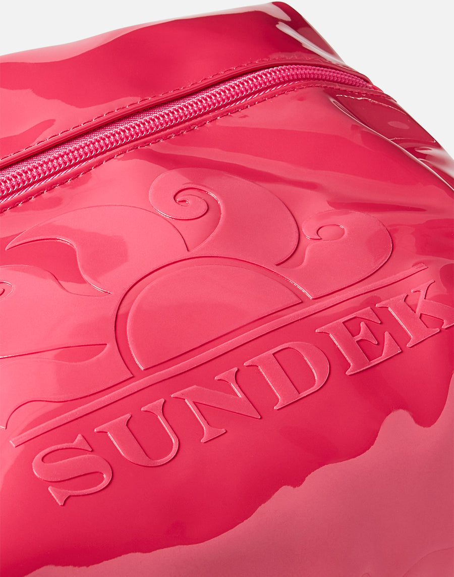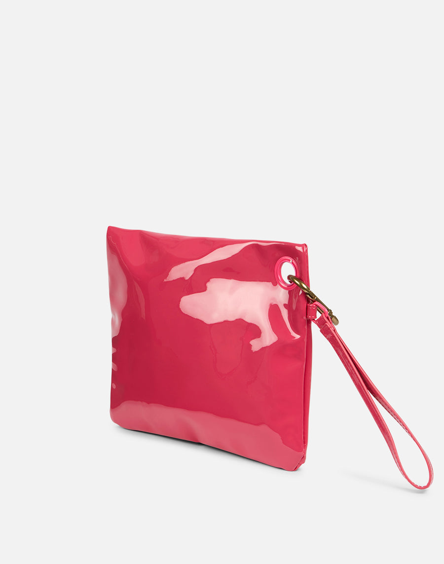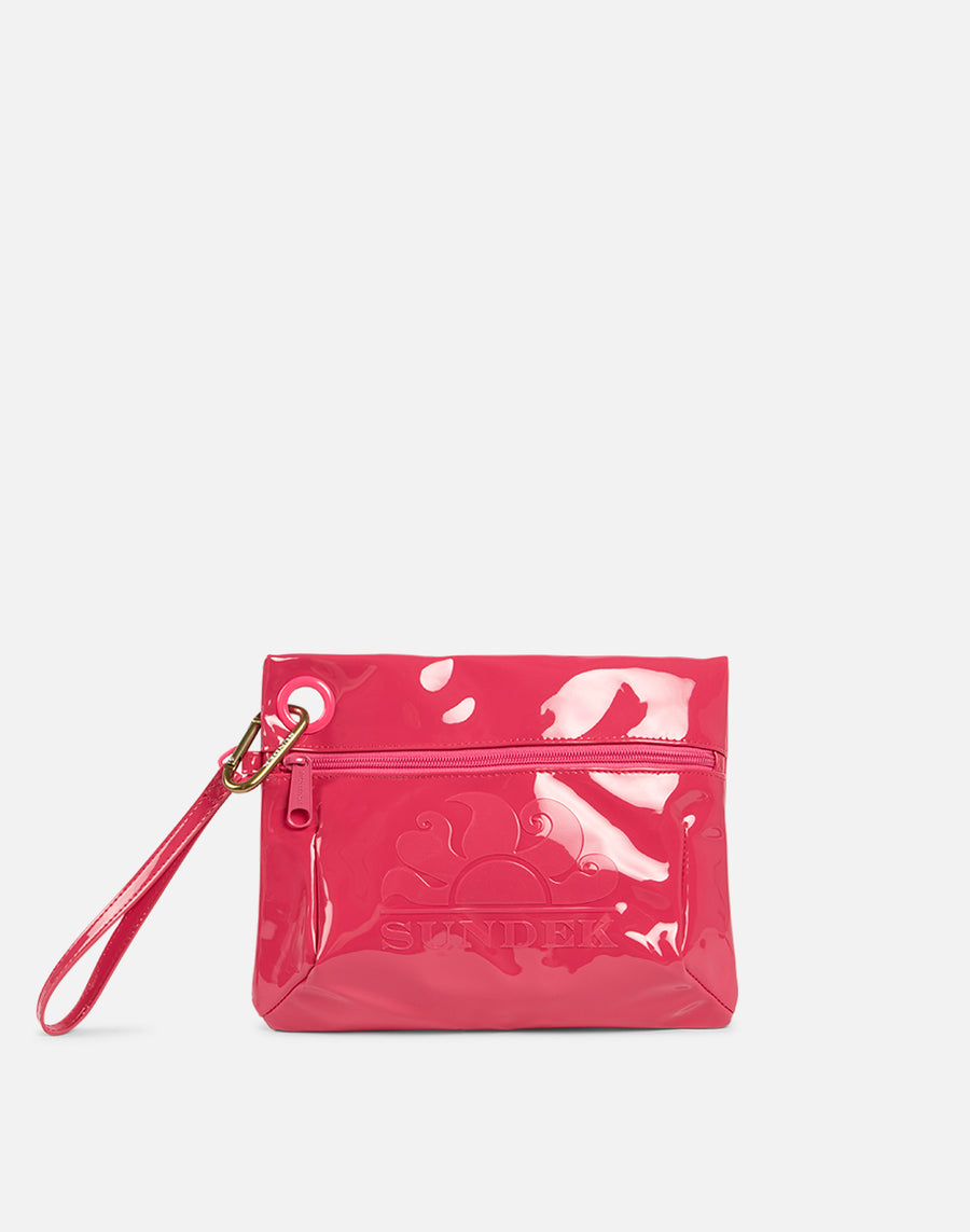 Waterproof beach clutch bag with snap hook and hand loop, to carry with you how and where you want. A versatile clutch bag that you can use on its own with the hand loop or attach to bags and backpacks thanks to the practical snap hook. The shiny effect and the front stitching give the clutch bag an indispensable touch of character. It is also waterproof, to protect your most important objects.