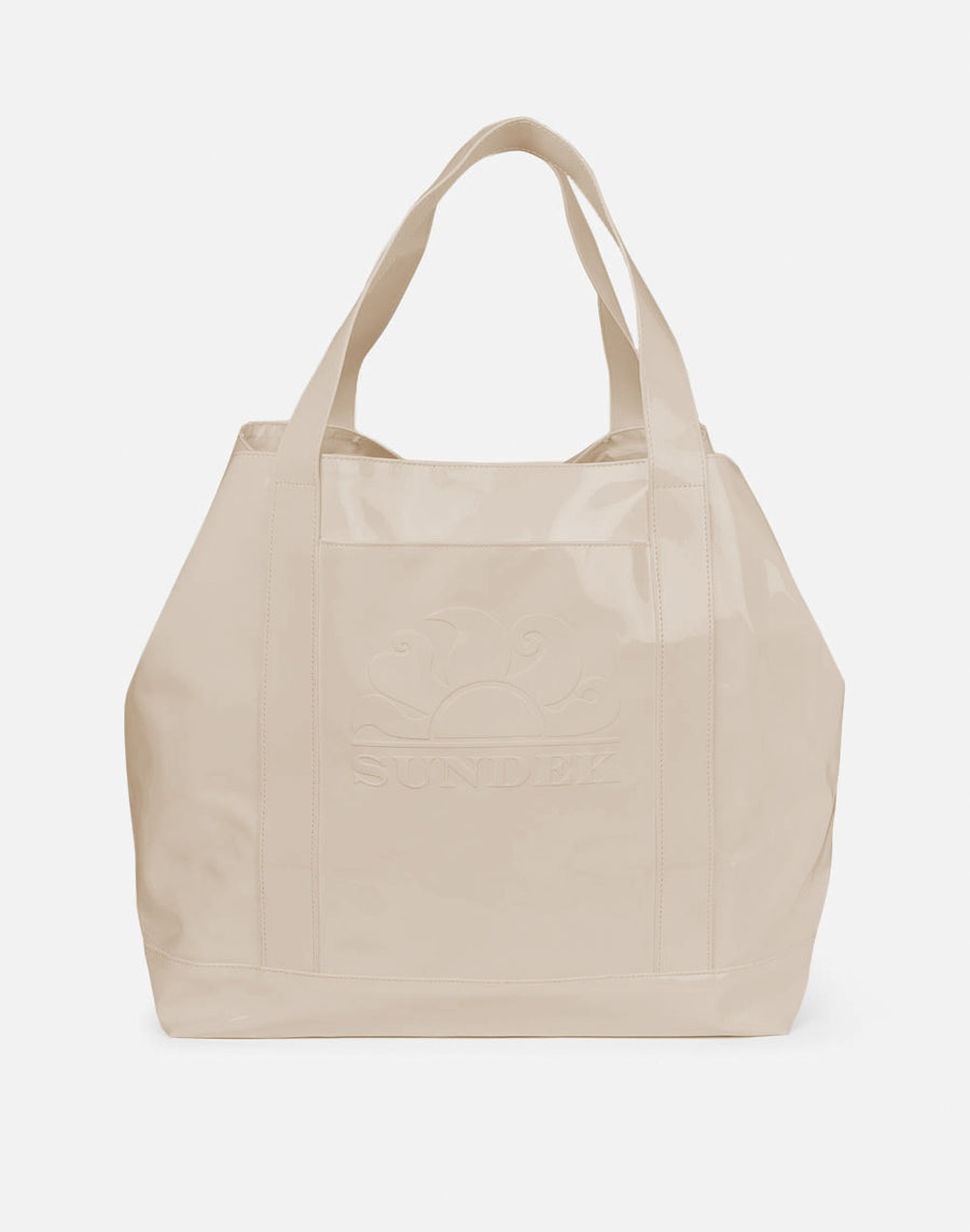 The perfect beach bag for summer and days on the beach: spacious and waterproof, to hold and protect your belongings, with sporty style and a glossy finish. Size: 65 x 39 x 21 cm