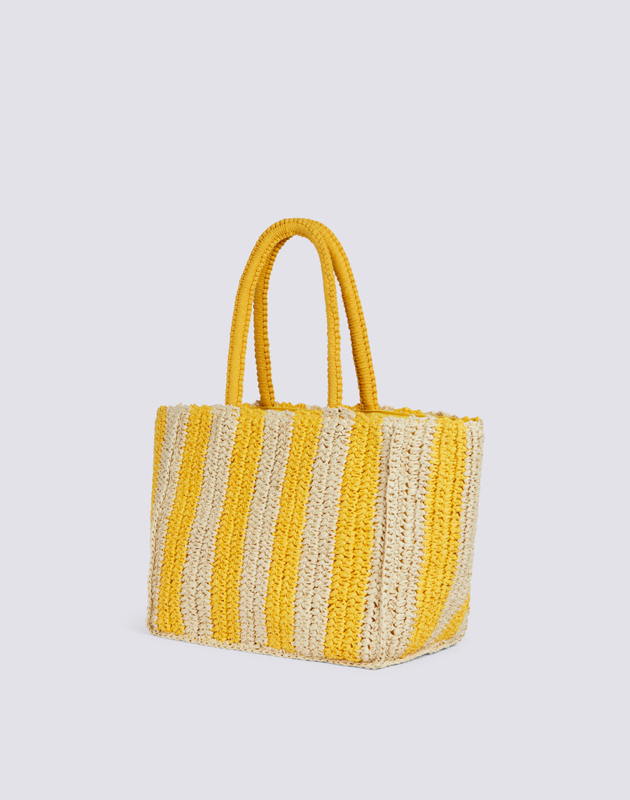 Striped Paper Straw bag with handles, zip closure and embroidered Sundek logo. Ideal for the beach, to bring with you everything you need for a day at the beach.