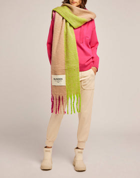 A versatile and comfortable multicoloured scarf designed to pair nicely with all your outerwear.