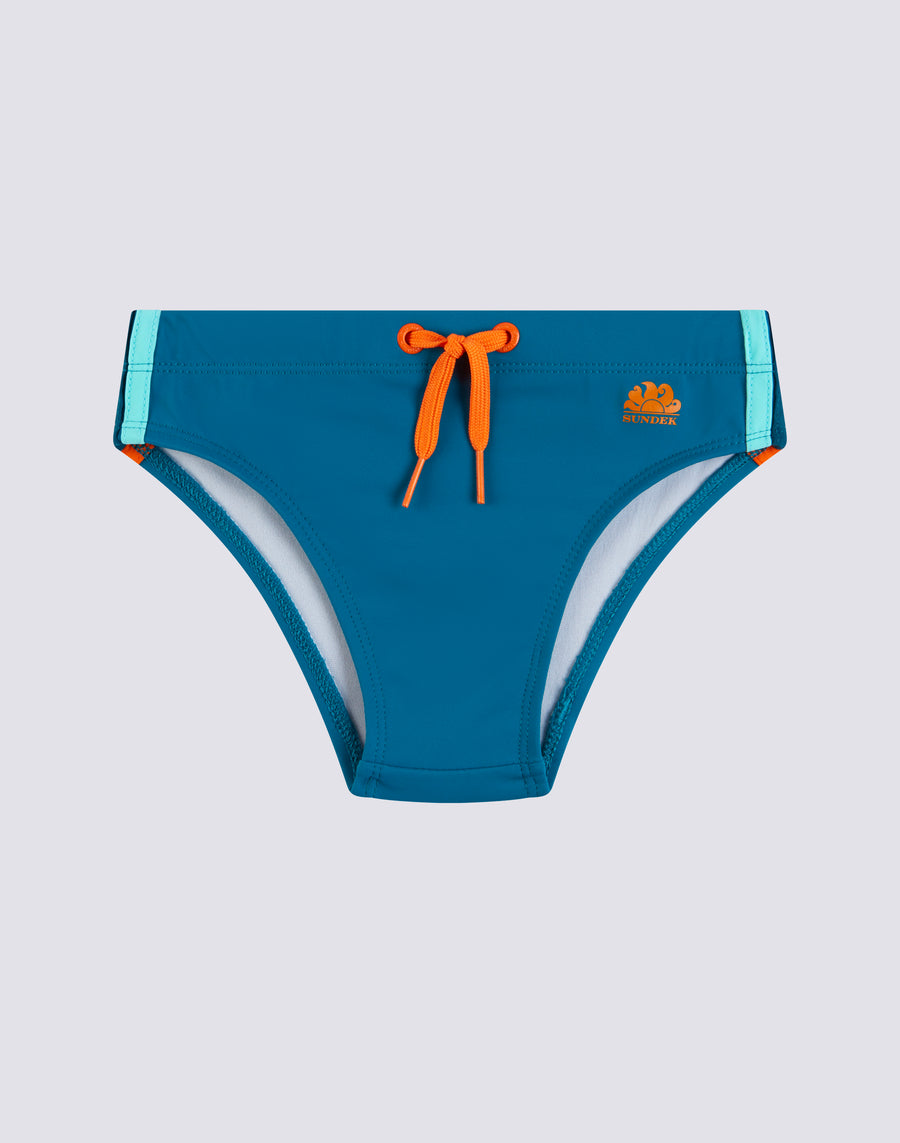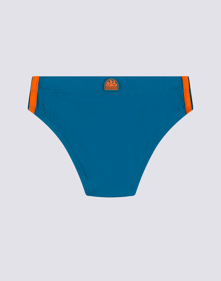 Immerse yourself in the colors of the rainbow. Children's swimsuit briefs in regenerated Econyl nylon.