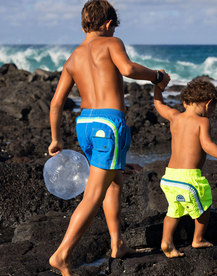 Intense color and hyper-comfortable quick-drying fabric for these baby boy beach shorts. A model that will accompany your child in his many activities on vacation, perfect for moving and playing in complete freedom.