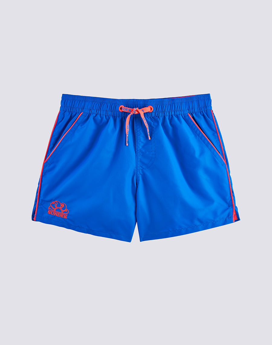 ICONIC TAFFETA SHORT-LENGTHS BOY’S SWIMSHORTS WITH ELASTICATED WAIST AND PIPING