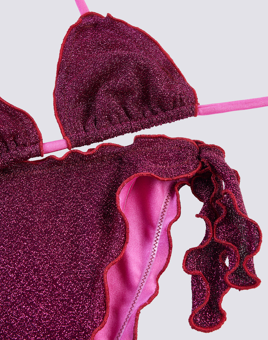 64% PA 36% EA Shiny lurex fabric, comfortable and with lining that guarantees a soft contact with the skin.
