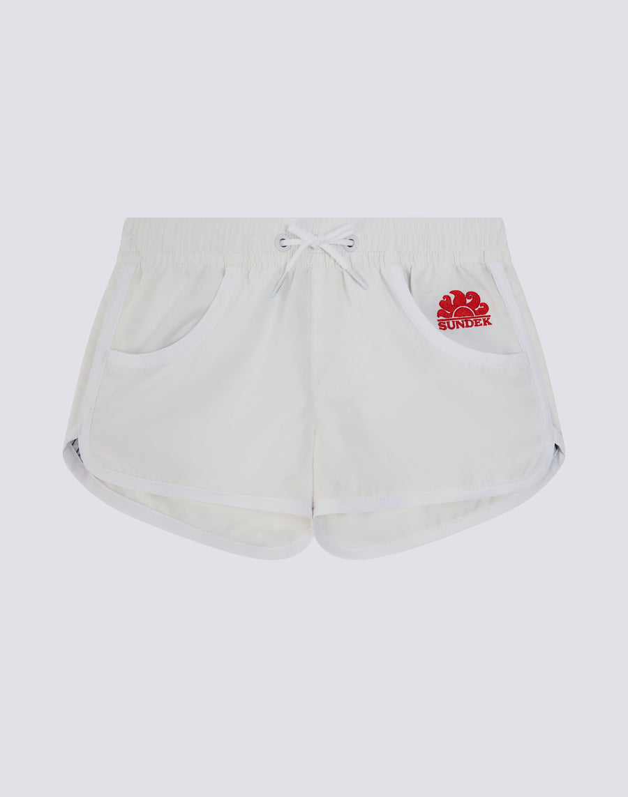 This is the mini version of the Margate women's swimsuit. Lightweight and comfortable, it has a low-rise elasticated waist with drawstring. Made from eco-friendly Repreve® fabric, it can also be worn over a one-piece swimsuit or bikini bottoms.