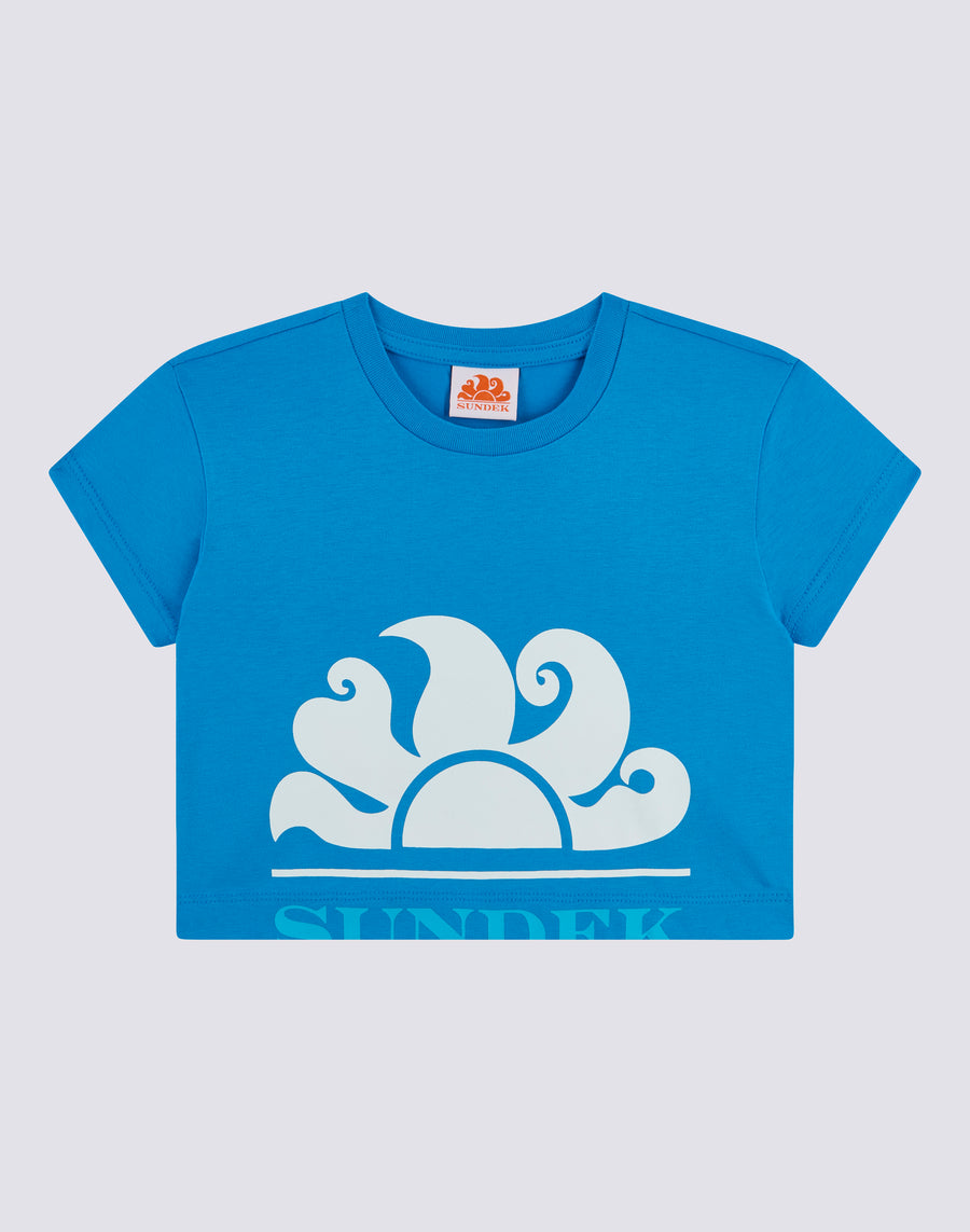 Girl's crop T-shirt to wear over jeans or skirts. A must-have model for your little girl's wardrobe.
