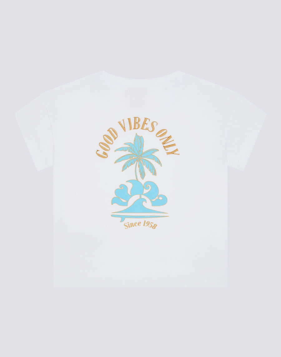 COMFORT GIRLS' T-SHIRT WITH GOOD VIBES ONLY PRINT ON THE BACK