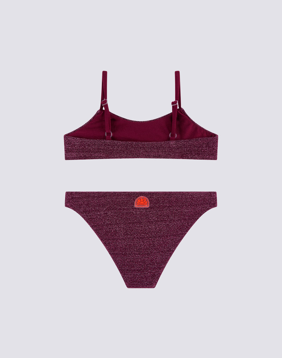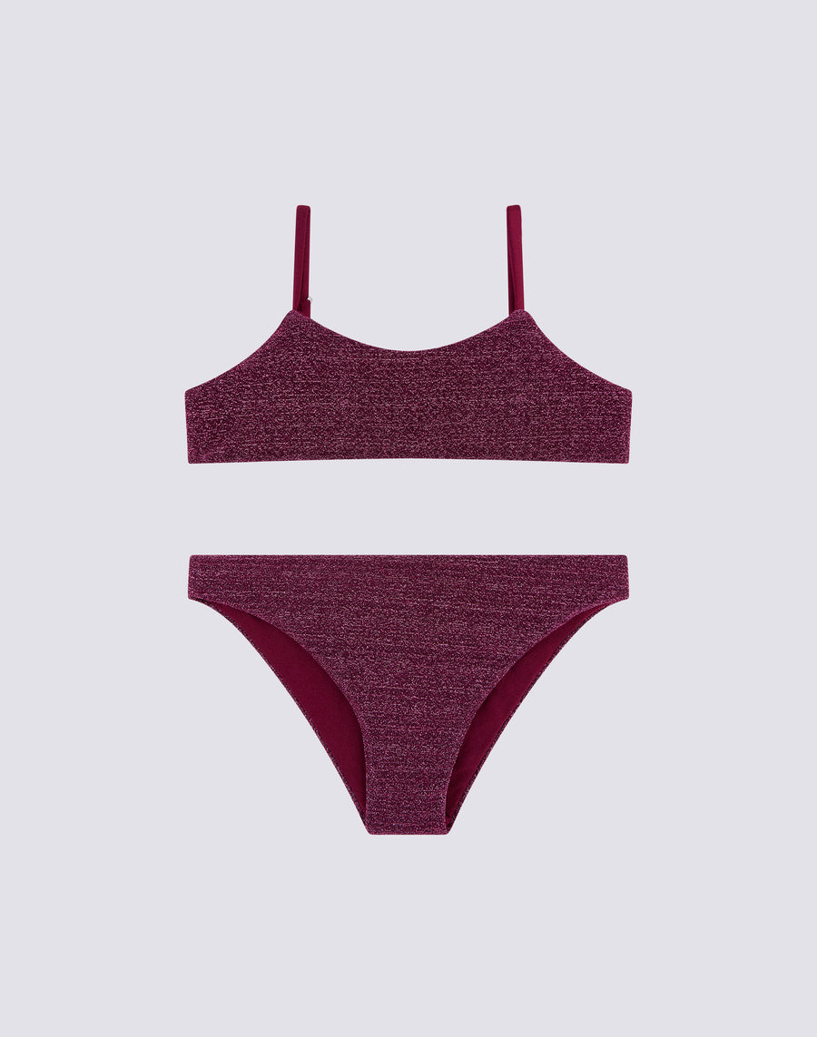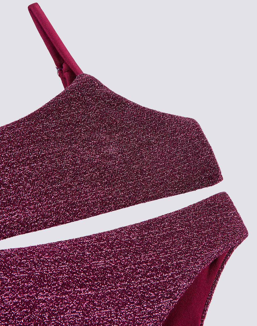 64% PA 36% EA Shiny lurex fabric, comfortable and with lining that guarantees a soft contact with the skin.