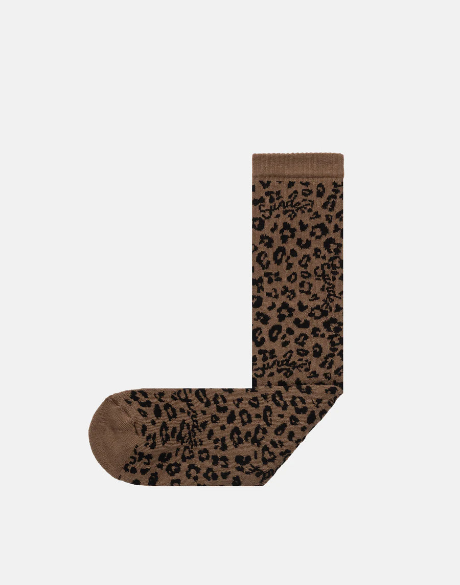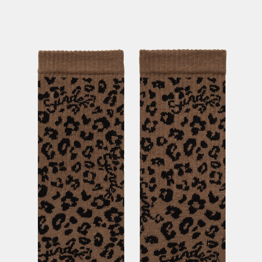 Leopard print soft cotton jacquard socks with ribbed cuffs