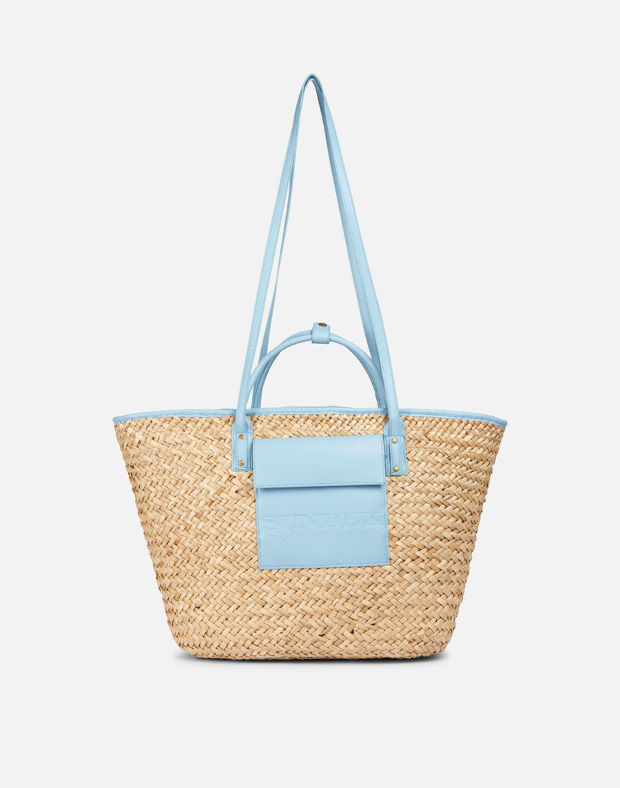 Woven straw beach bag, perfect for the beach and for the city: a summer classic with double handles to carry by hand or wear over the shoulder. Size: 65 x 34 x 19 cm