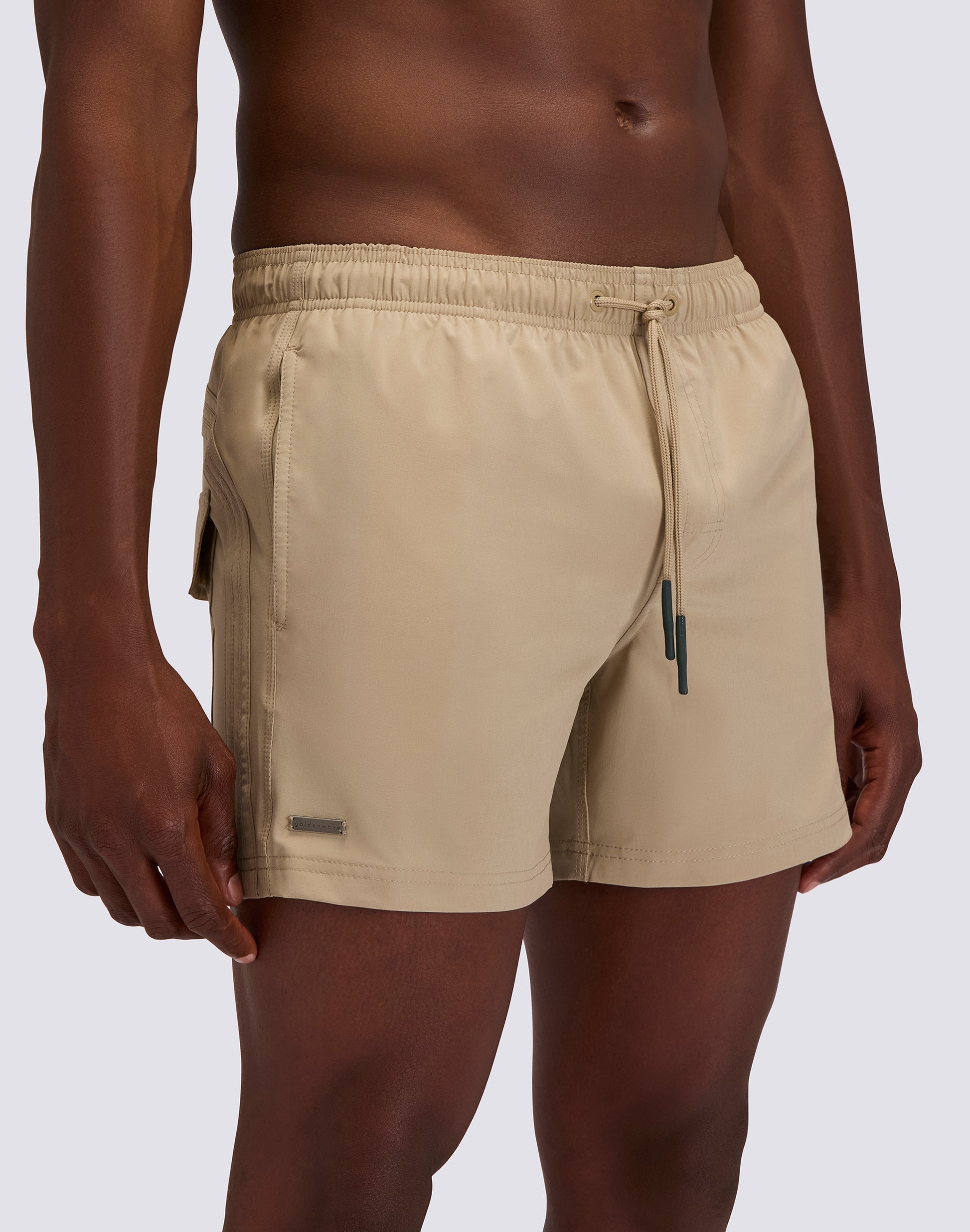 GOLDENWAVE MEN'S SHORT SWIMSUIT WITH ELASTIC WAIST, SOLID COLOR, 4WAY STRETCH