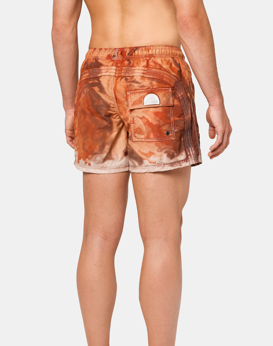 SHORT SWIM SHORTS WITH AN ELASTICATED WAISTBAND AND PATCH