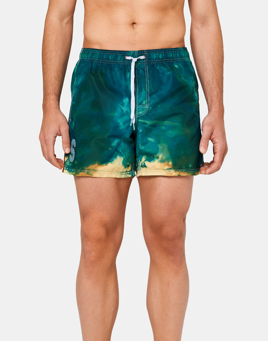 100% POLYESTER Our historic nylon-taffeta fabric is a champion of performance because it dries quickly, is resistant and does not deteriorate over time, keeping its color and appearance unchanged. Handcrafted Tye-Dye fabric, the pattern may differ slightly from the photos shown.