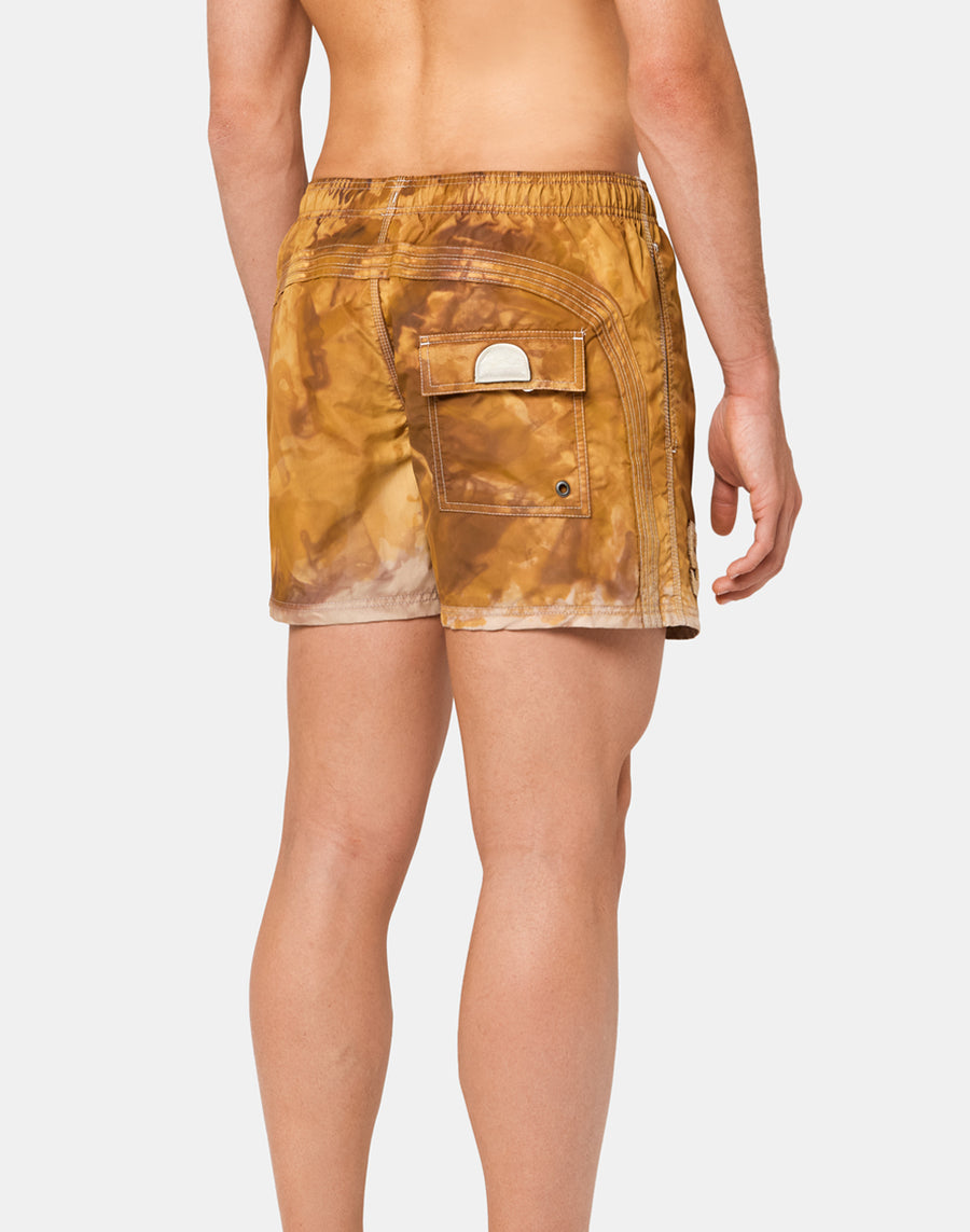 SHORT SWIM SHORTS WITH AN ELASTICATED WAISTBAND AND PATCH