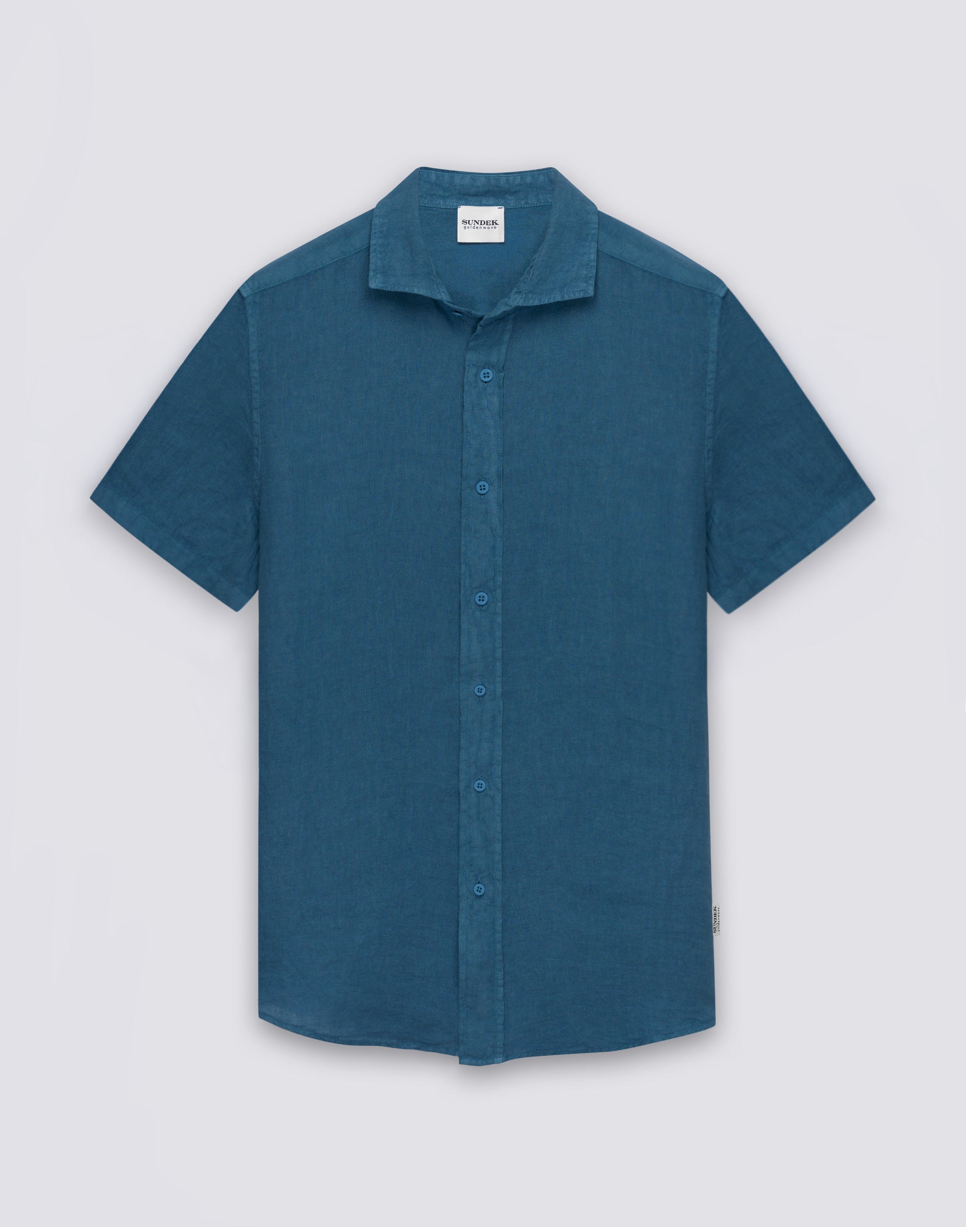 Add a touch of freshness to your summer wardrobe with this men's short-sleeved, garment-dyed linen shirt in a regular fit. Perfect for a variety of occasions, from the beach to cocktail hours, simple, lightweight, and versatile.