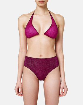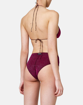 Made from shiny lurex with contrasting trim, these high-waisted high-leg briefs will pair perfectly with your chosen matching bikini top.
