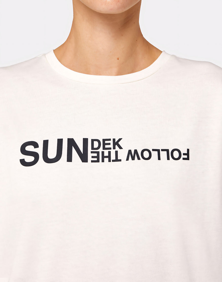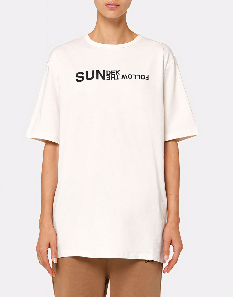Women's oversized T-shirt with Sundek logo to wear as a base for all your casual and leisure time looks. This soft and comfortable women's maxi t-shirt will immediately become a joker in your wardrobe dedicated to casual outfits: perfect for travel, free time and all informal occasions. A garment for all seasons with an oversize fit.