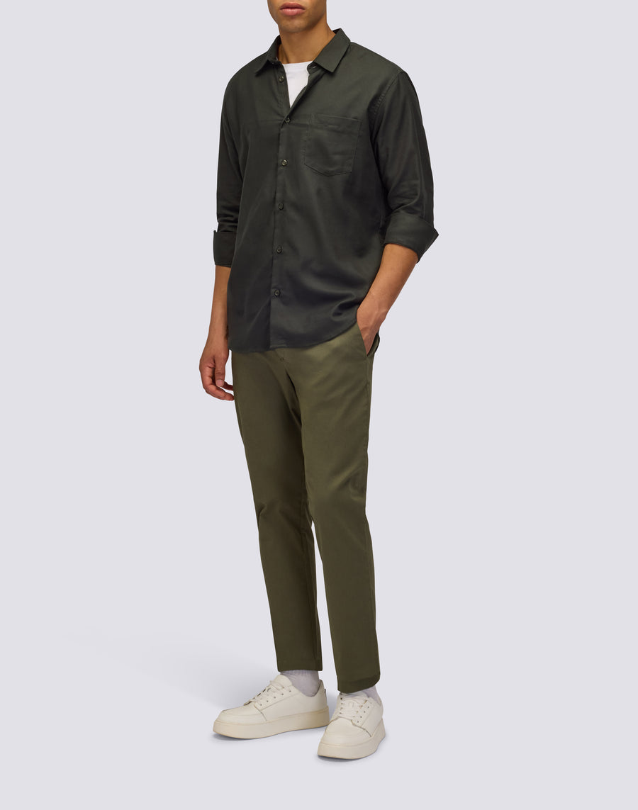This men's long-sleeved shirt, crafted from high-quality cotton gabardine, combines comfort and refined style. The durable fabric ensures long-lasting durability, while the solid-color design ensures a versatile and always elegant look, perfect for formal or casual occasions.