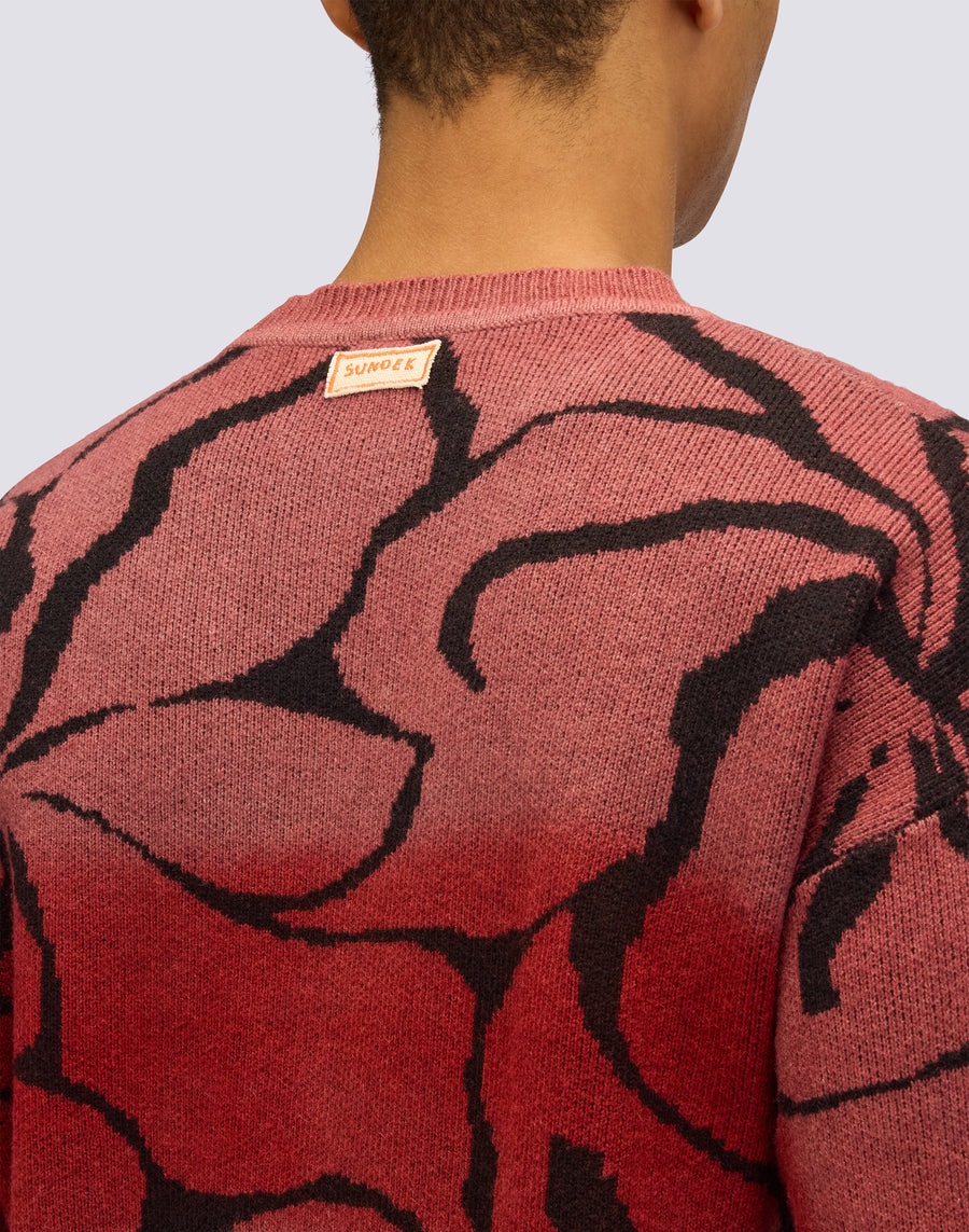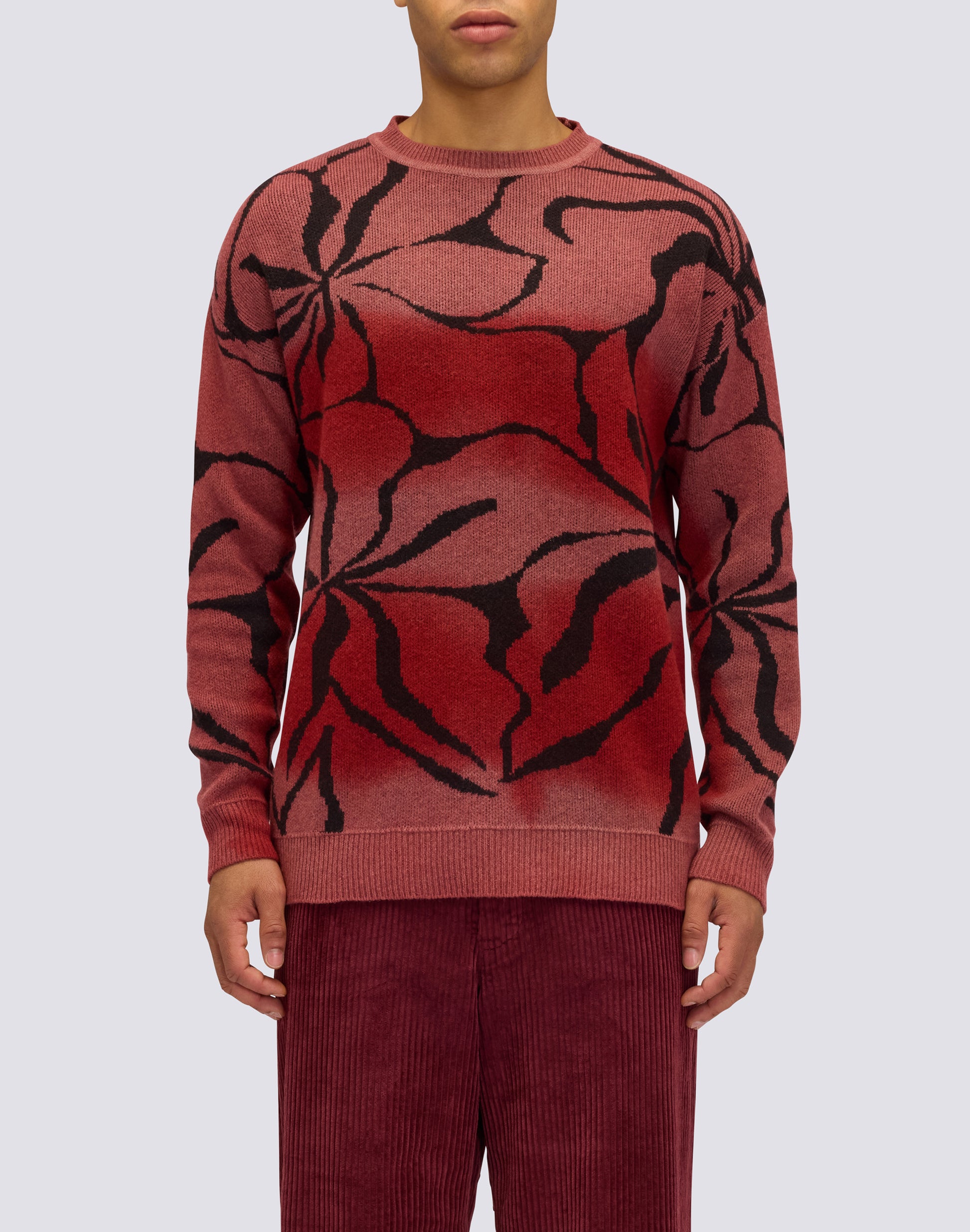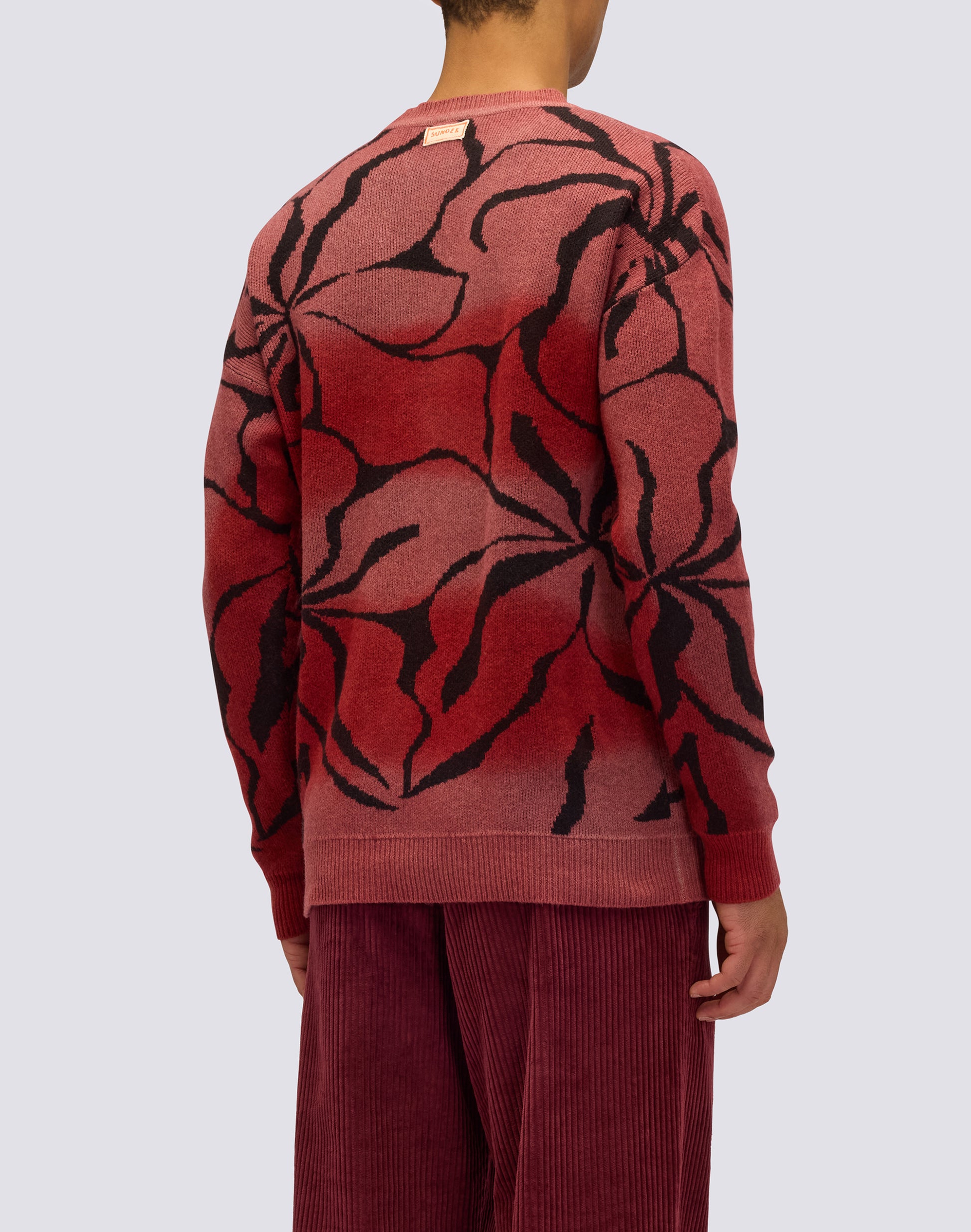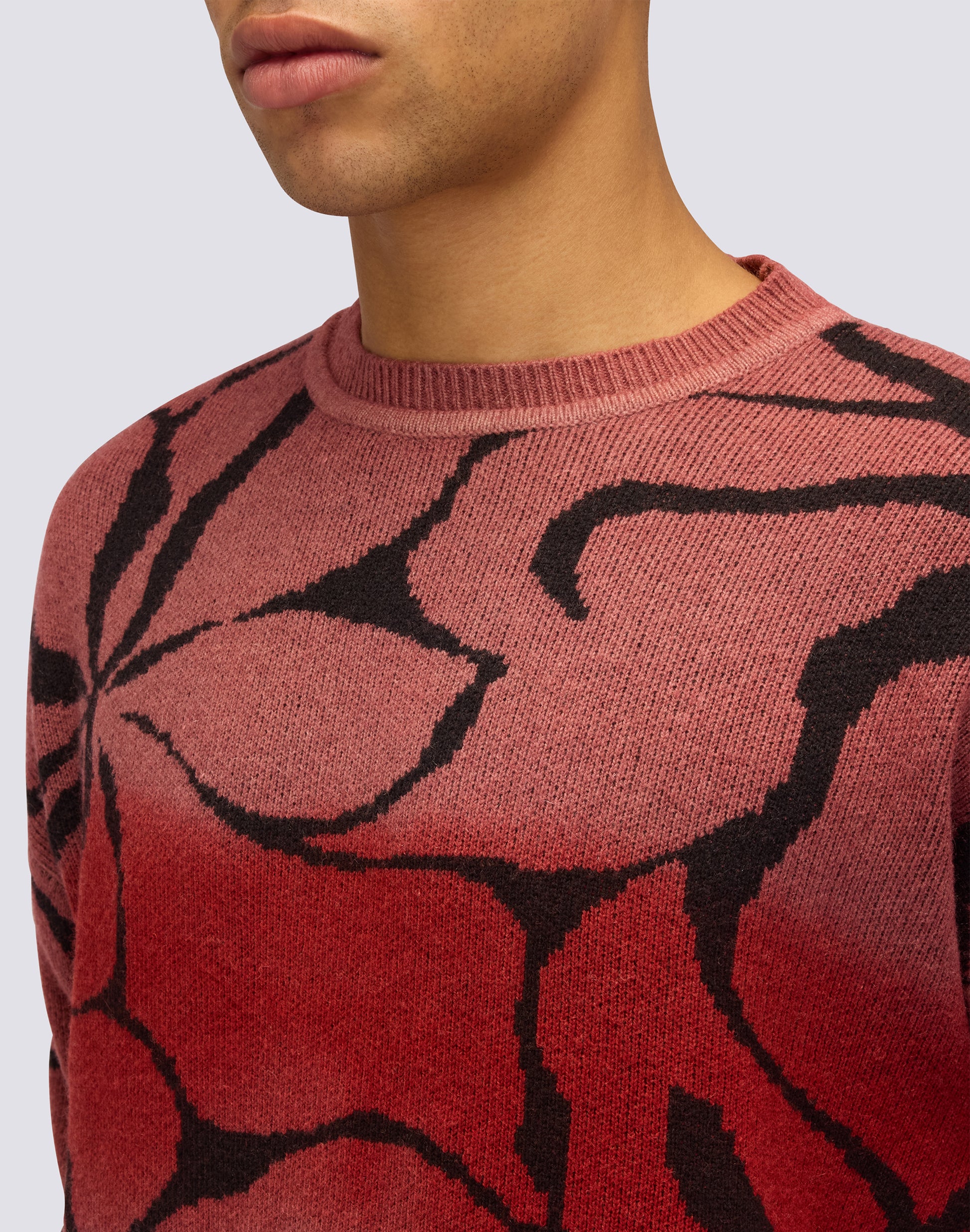 MEN'S CREW NECK JACQUARD SWEATER WITH HIBISCUS PATTERN