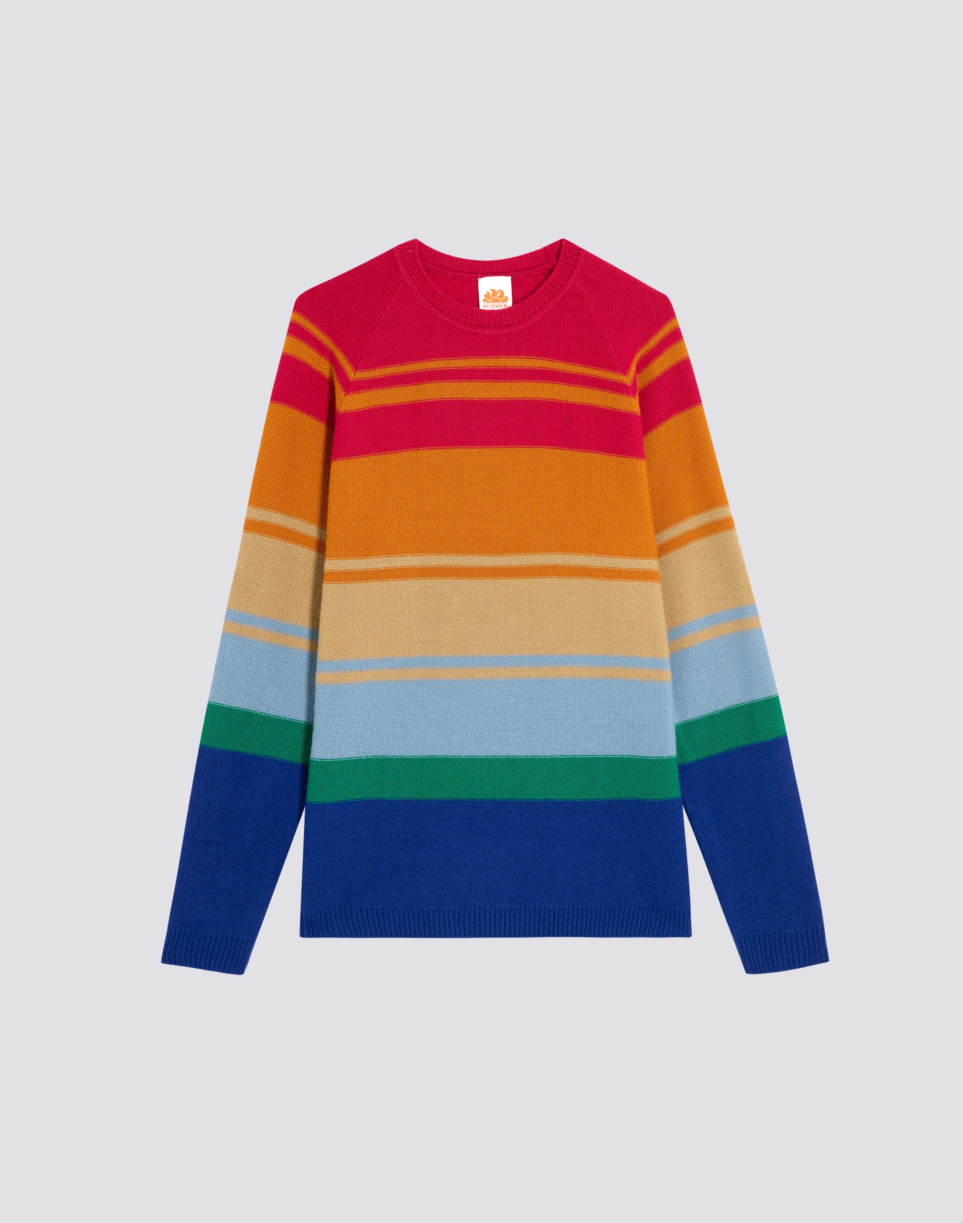 UNISEX MULTI-STRIPE CREW NECK SWEATER
