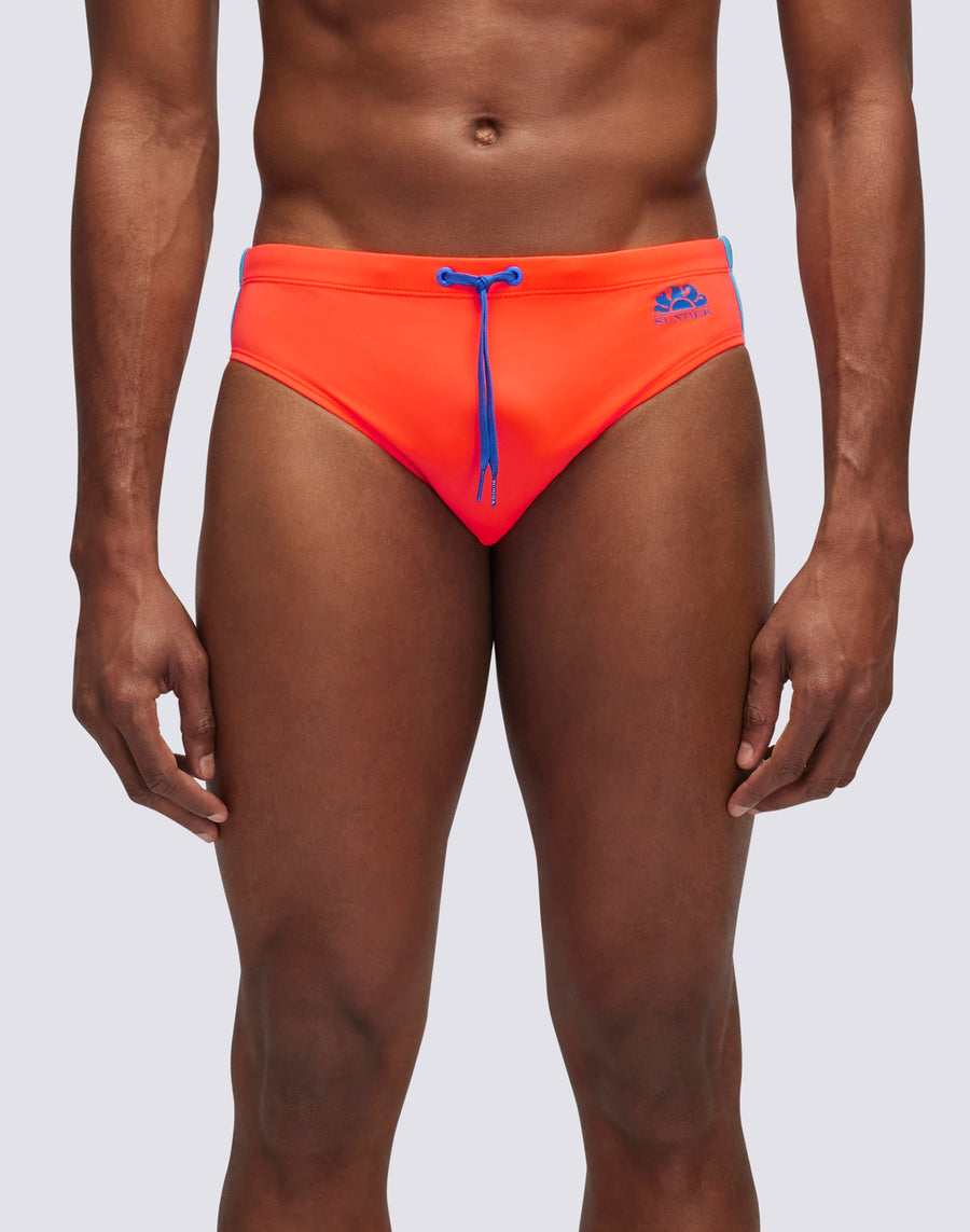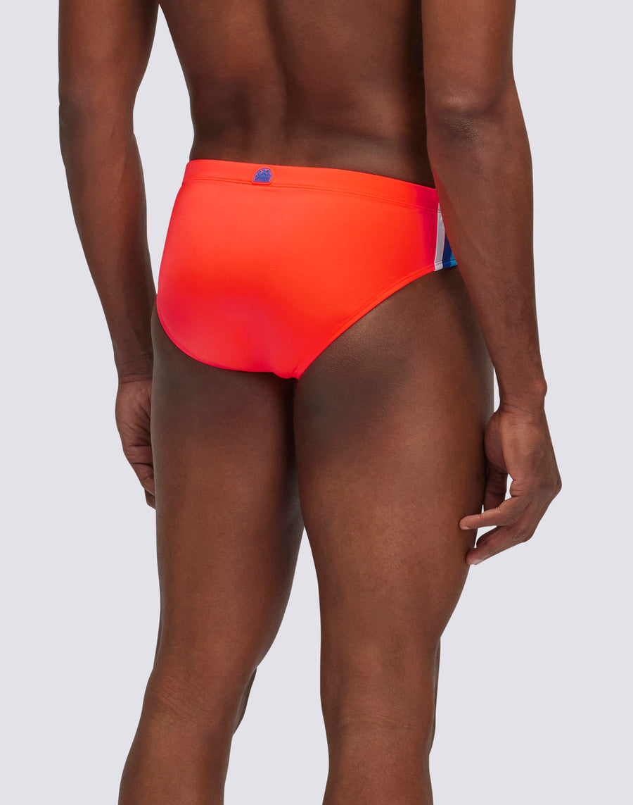 Men's plain briefs with an adjustable waistband Monochrome swim briefs with a drawstring and three contrasting stripes down the sides, combining bold style with functionality. Designed to dry quickly, they ensure comfort and durability in and out of the water.