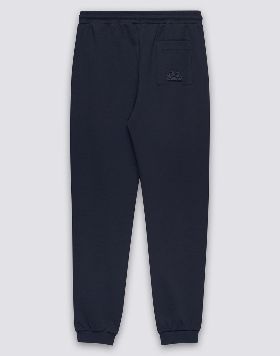 These Sundek men's long trousers combine everyday comfort and sustainability: made from recycled interlock cotton, they feature an elastic waistband with drawstring, an embossed logo, and cuffed ankles. A versatile piece that transitions from relaxing at home to outdoor leisure time in style.