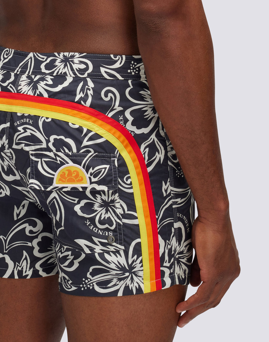 SHORT FIXED WAIST SWIMSHORTS ICONIC TAFFETA WITH VINTAGE PRINT HIBISCUS SK23